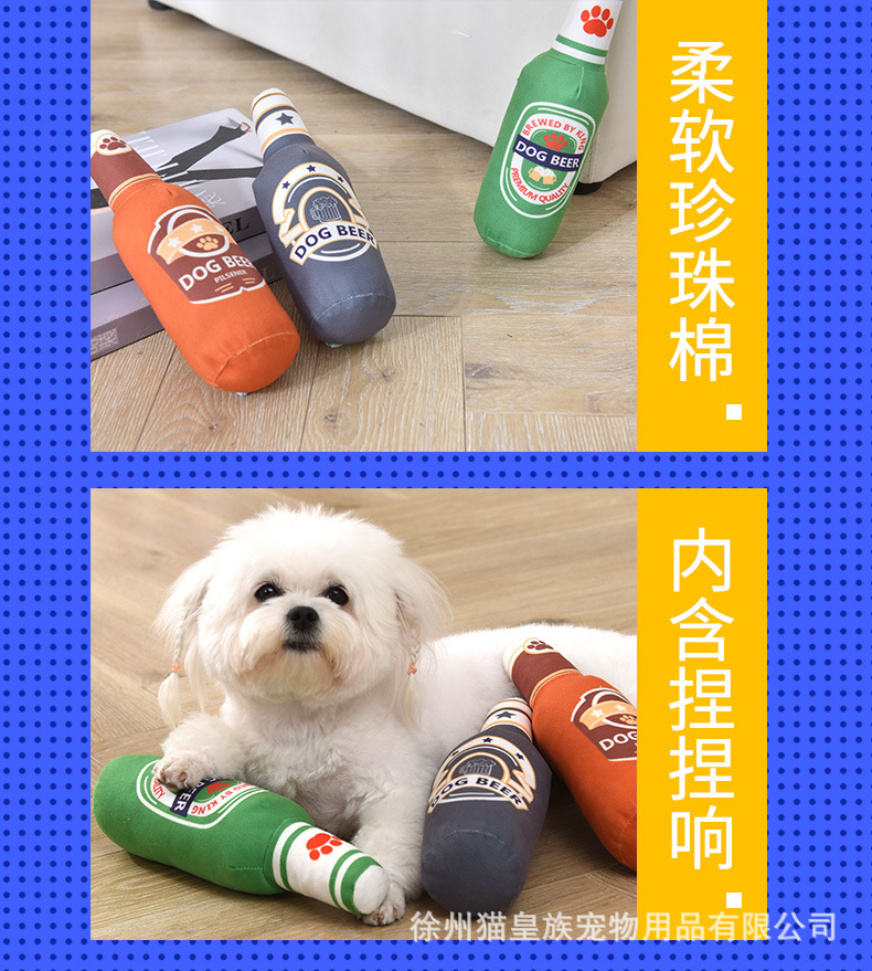 애완 동물 시뮬레이션 장난감 긁힘 방지 한입 봉제 사운드 시뮬레이션 맥주병 고양이와 개 베개 릴리프 인터랙티브 용품