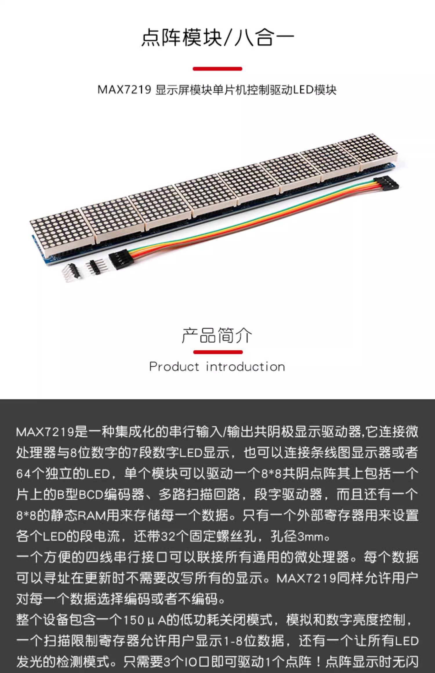 MAX7219 도트 매트릭스 모듈 8 도트 매트릭스 8 인 1 디스플레이 모듈 MCU 제어 드라이버 LED 모듈