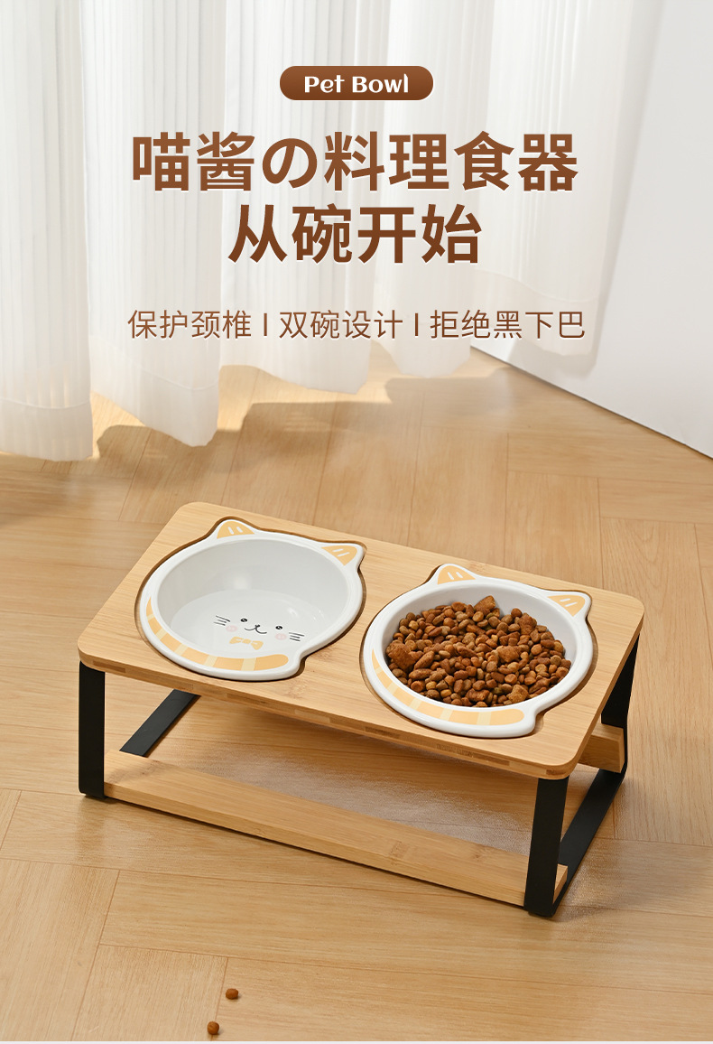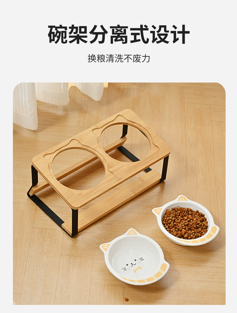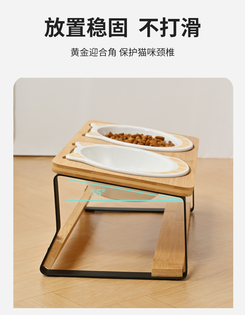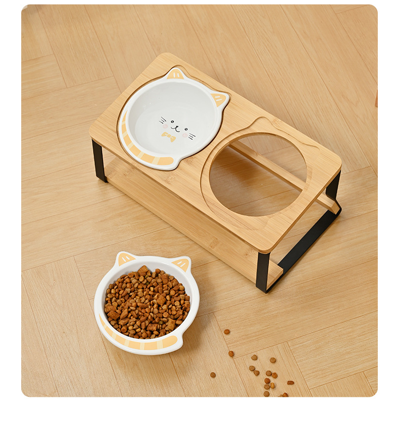 애완 동물 고양이 음식 그릇 만화 철 나무 프레임 15 도 기울기 목 보호 안티 노크 가정용 고양이 먹이 그릇스토어 가기