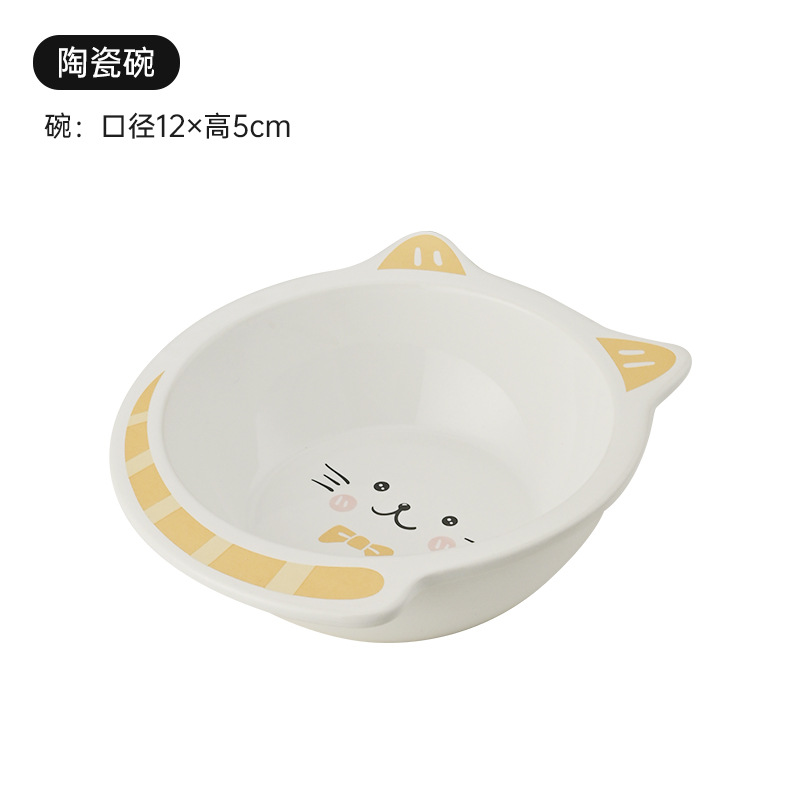 애완 동물 고양이 음식 그릇 만화 철 나무 프레임 15 도 기울기 목 보호 안티 노크 가정용 고양이 먹이 그릇