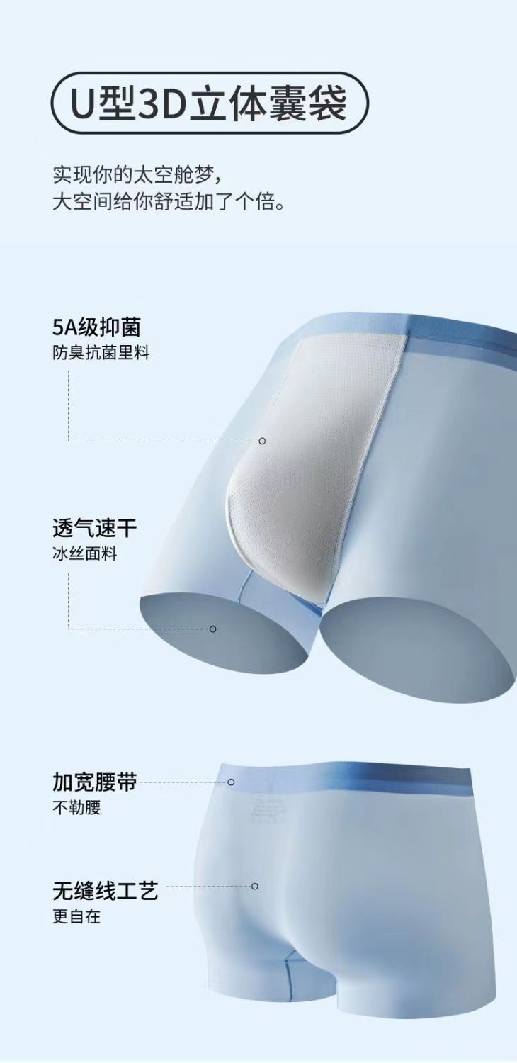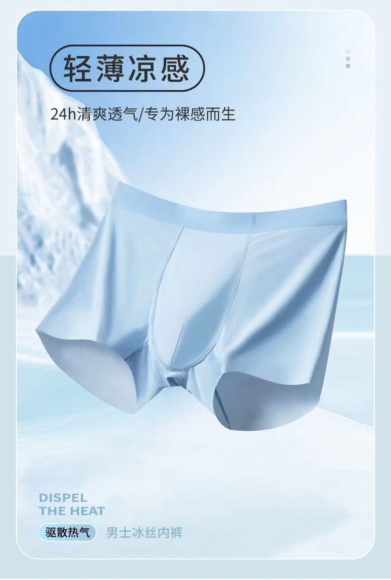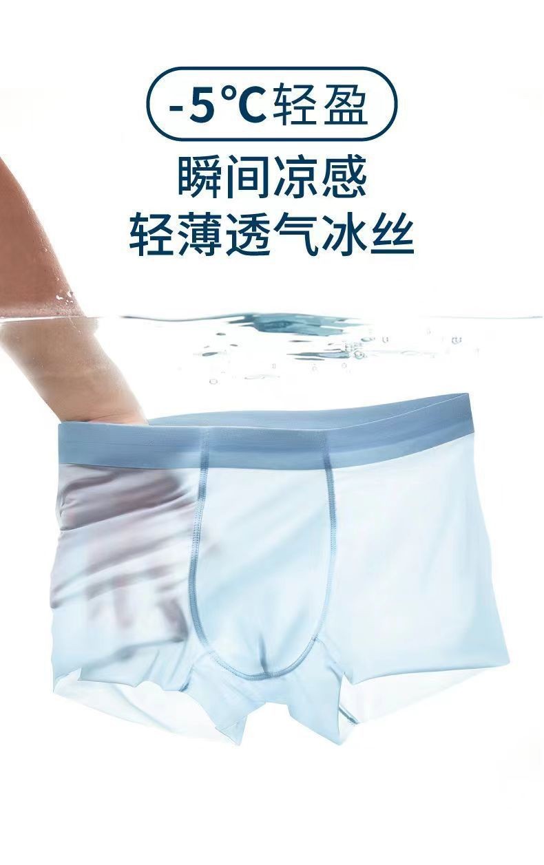 C 여름 폭발 남자의 얼음 실크 원활한 복서 바지 매우 얇은 항균 얼음 멋진 속옷 머리카락 한 세대스토어 가기