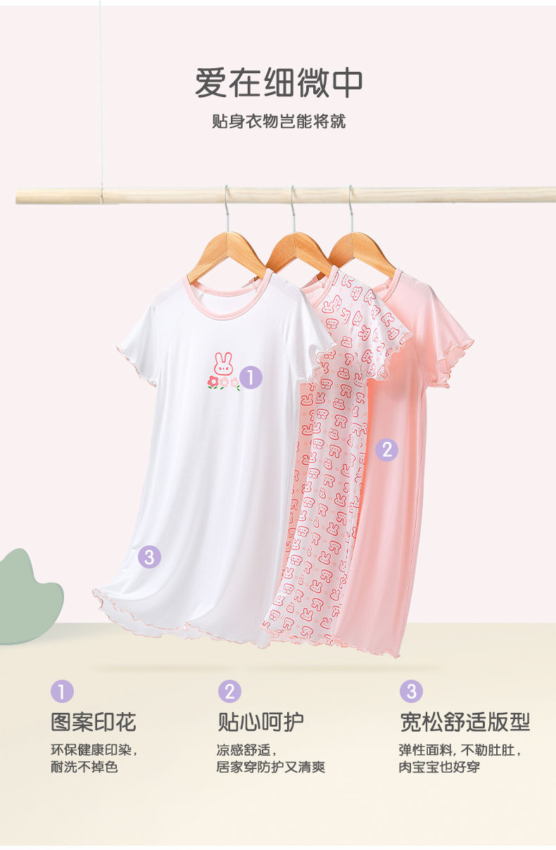 모달 어린이 반팔 나이트가운 여름 새 여아 홈 옷 파자마 얇은 대형 어린이 아기 공주 원피스스토어 가기