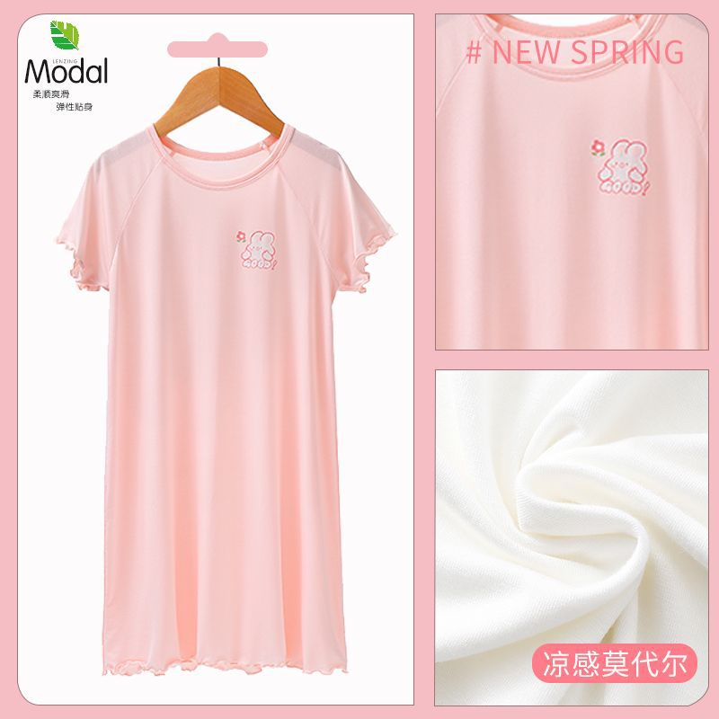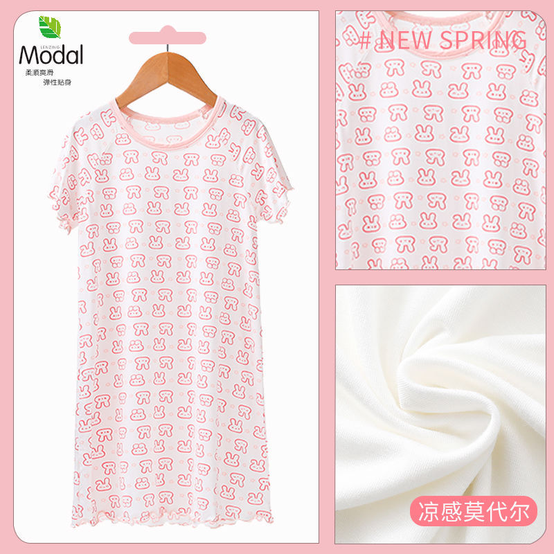 모달 어린이 반팔 나이트가운 여름 새 여아 홈 옷 파자마 얇은 대형 어린이 아기 공주 원피스