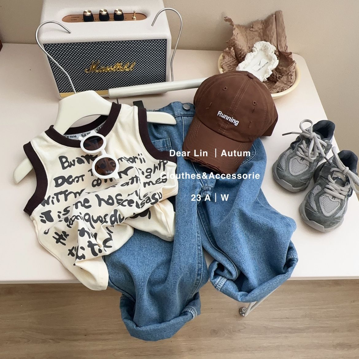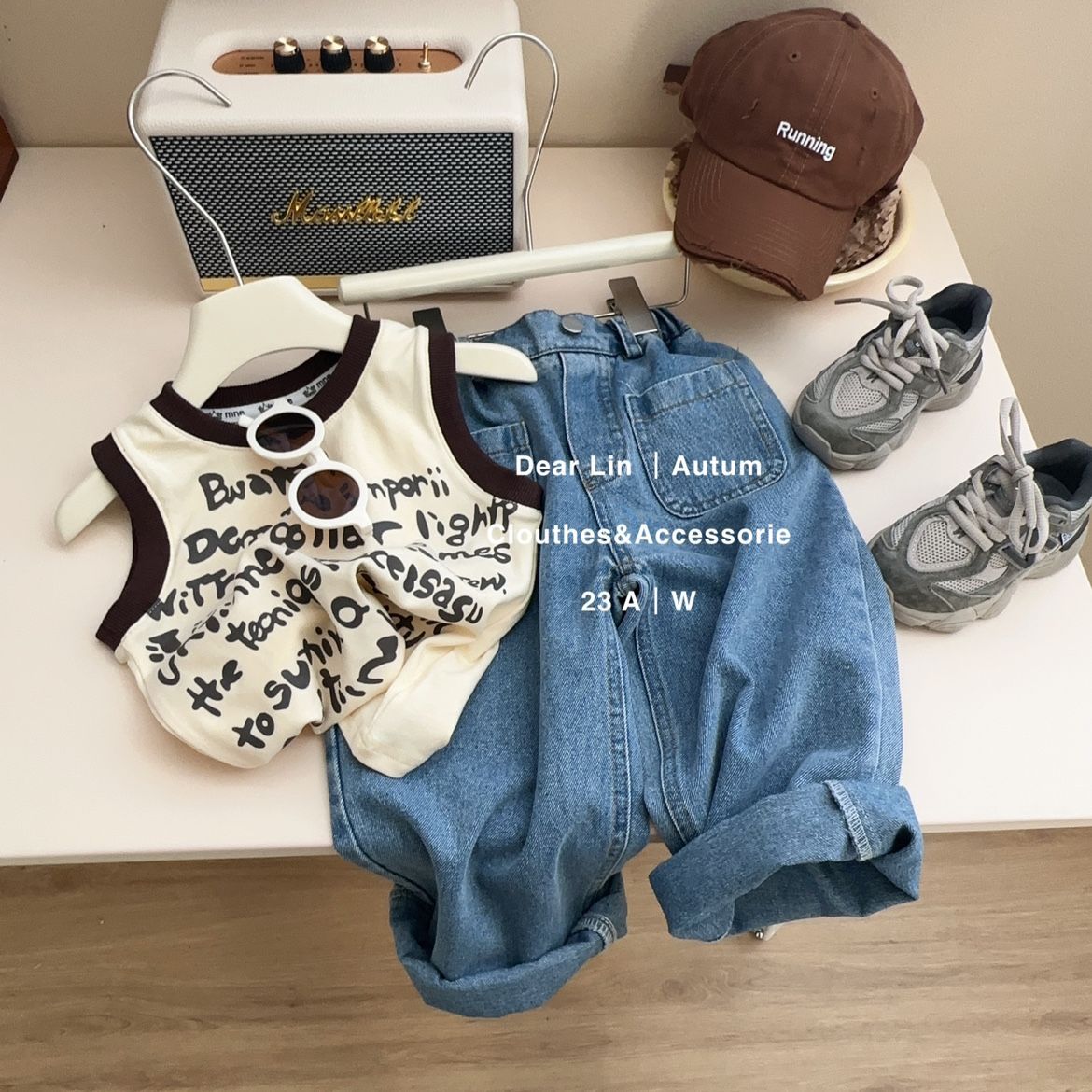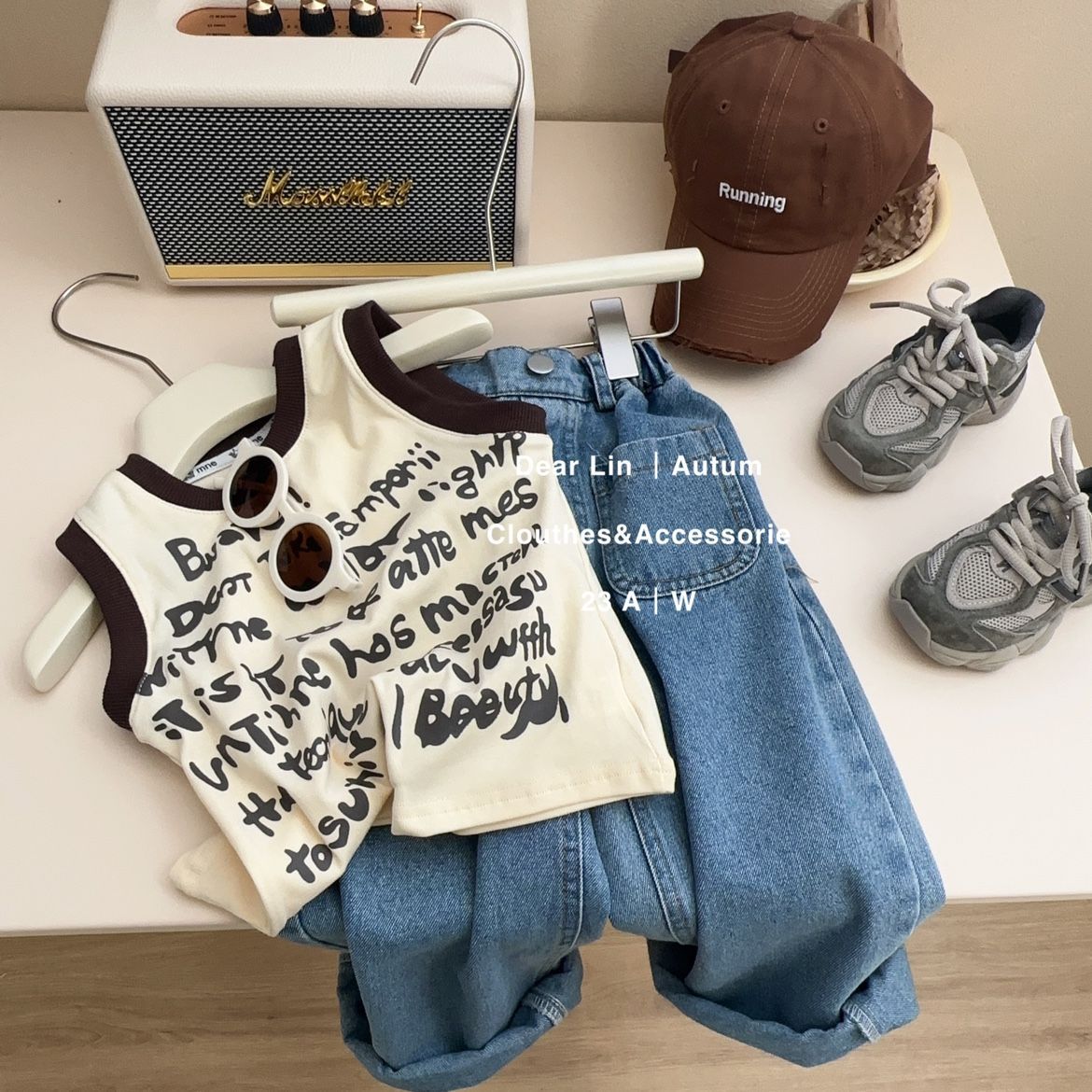 소년 소녀 튀긴 거리 편지 면화 조끼 여름 새 어린이 프린트 탑 아기 옷 한국 민소매 티셔츠스토어 가기