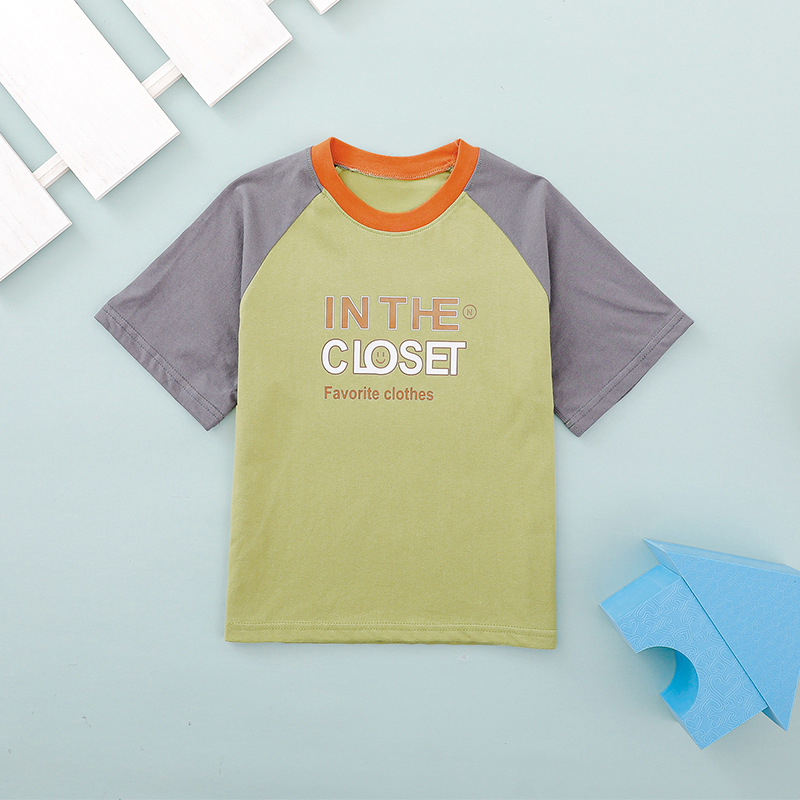 어린이 반소매 티셔츠 여름 소년 라글란 인쇄면 대형 어린이 반소매 소녀베이스 자켓 아동복스토어 가기