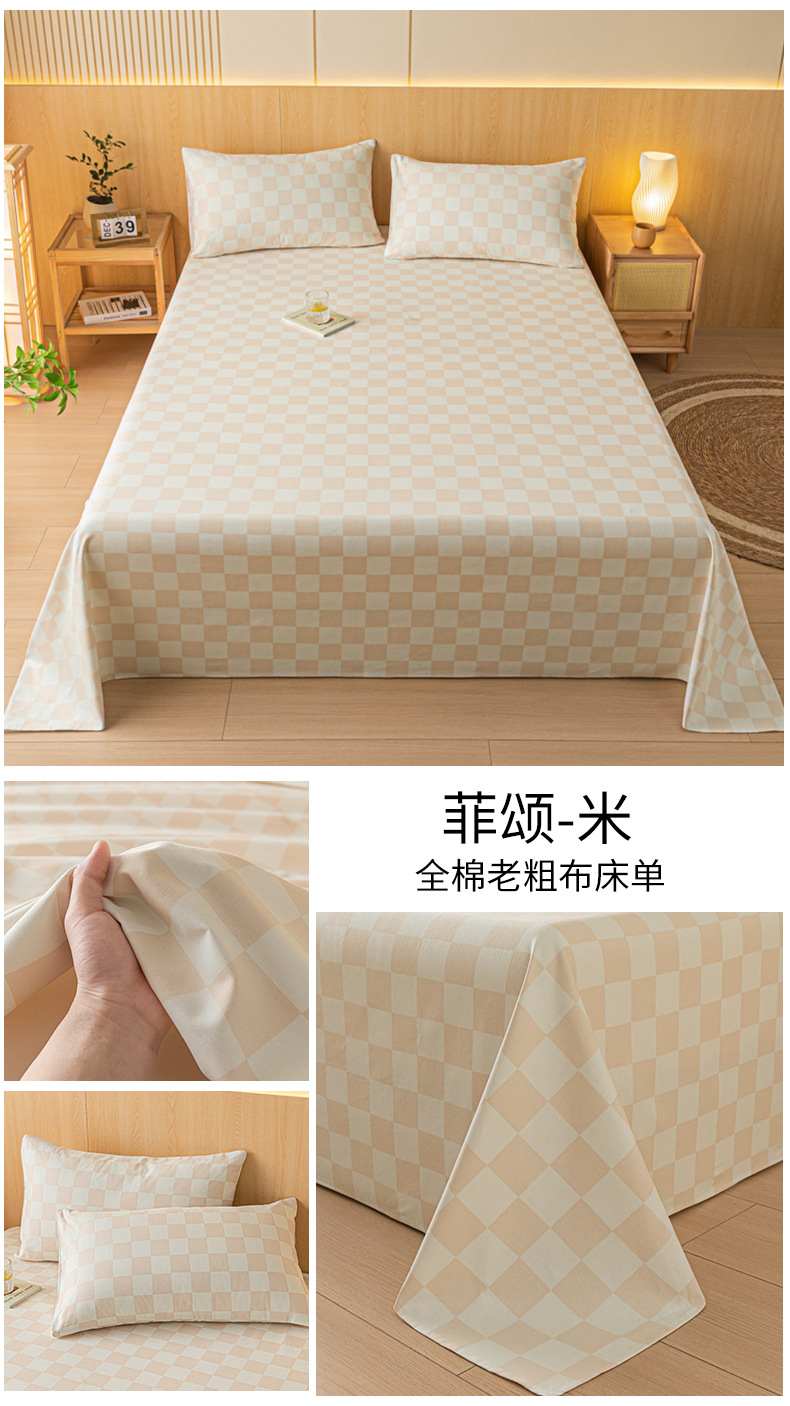 순면 여름 오래 된 거친 천 침대 시트 원피스 100 면 린넨 면 린넨 가정용 기숙사 3 피스 싱글 침대 세트스토어 가기