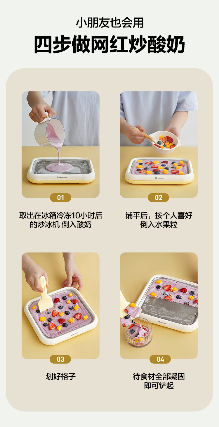 MOKKOM Mill 얼음 튀긴 기계 신 우유 기계 가정용 소형 아이스크림 기계 홈 메이드 diy 아이스 프라이드 플레이트 플러그 해제