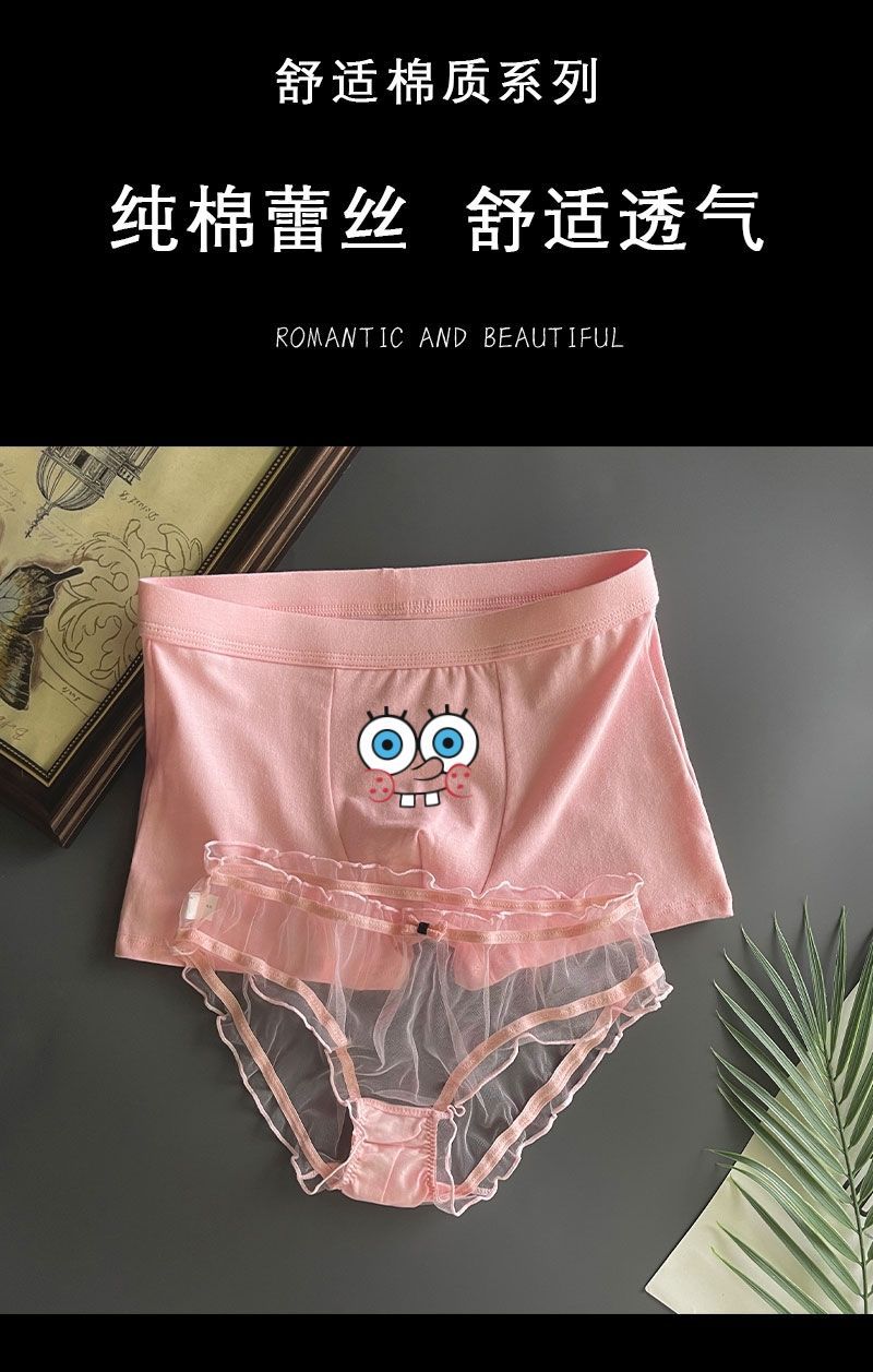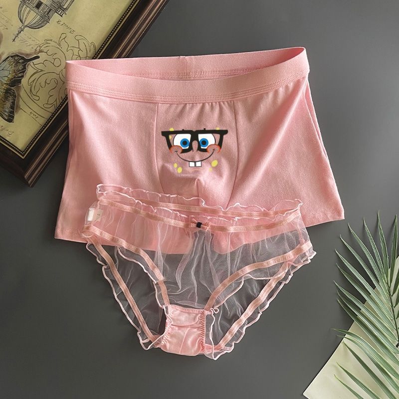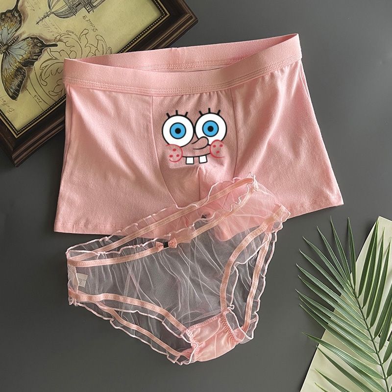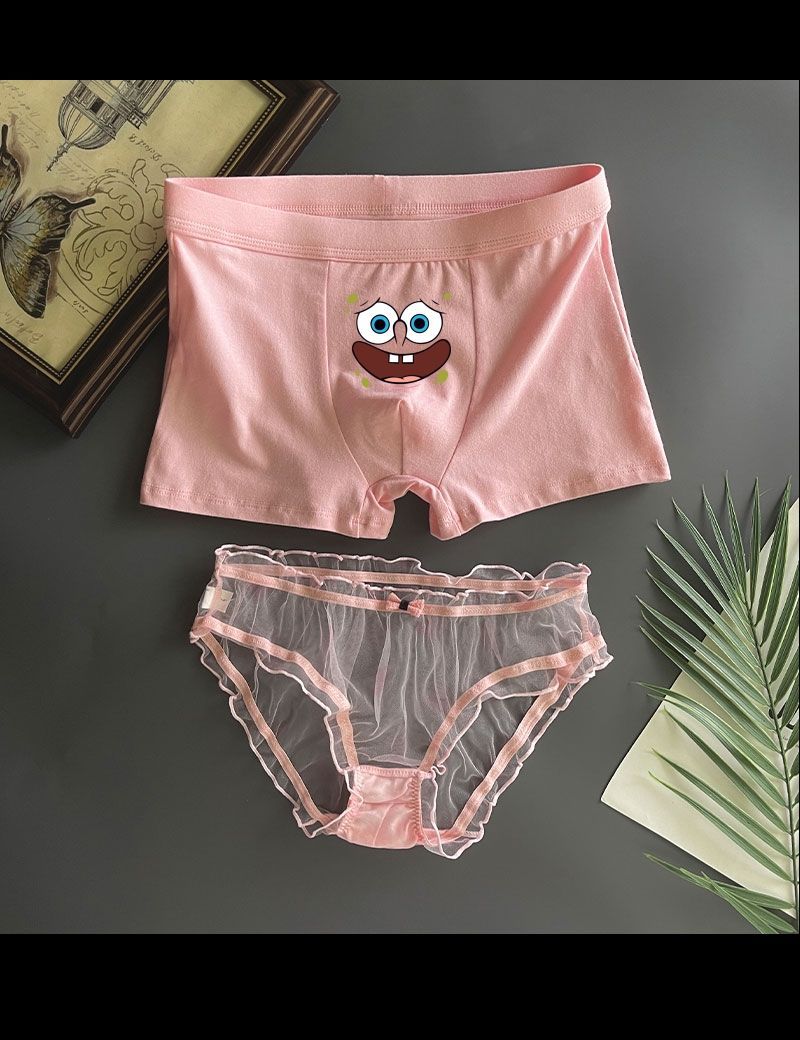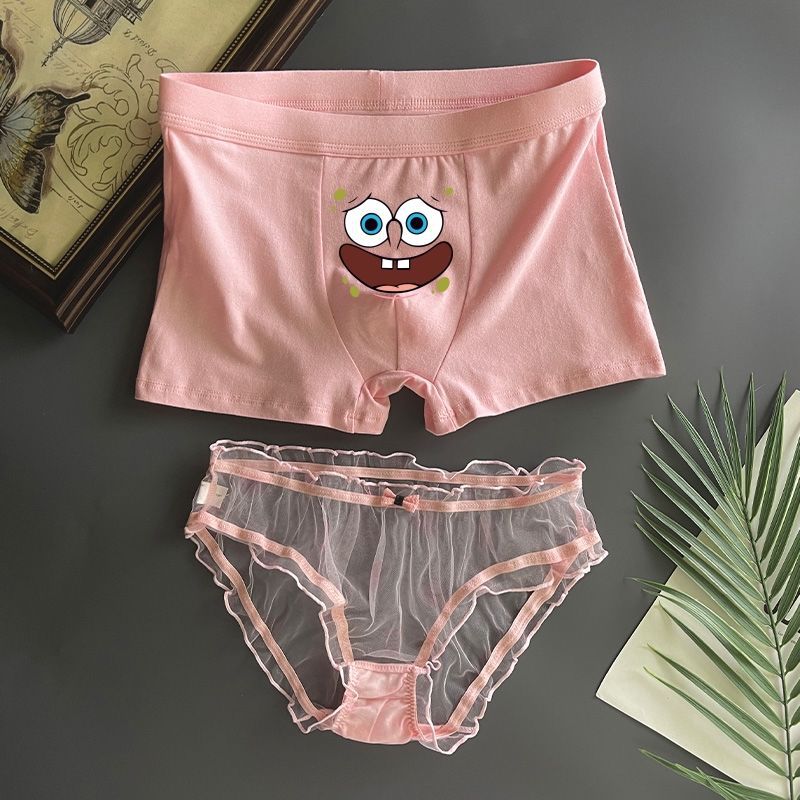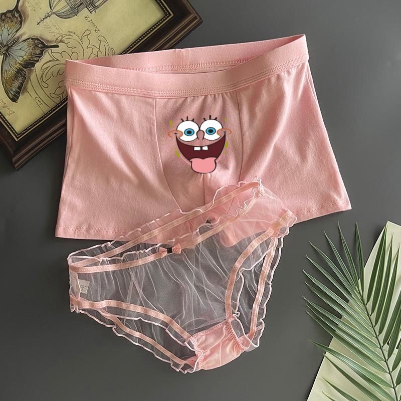 커플 속옷 스폰지 밥 귀여운 커플 속옷 남자와 여자 레이스 핑크 남자와 여자 재미있는 재미