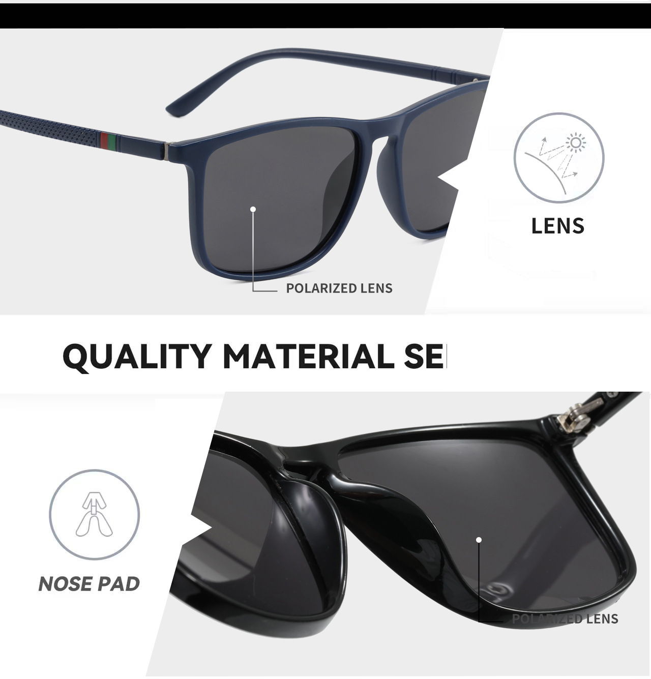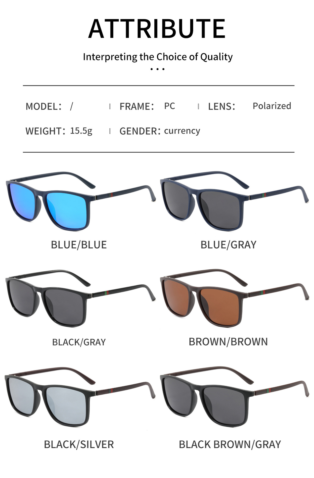 국경 간 아마존 편광 선글라스 클래식 패션 선글라스 남성과 여성 스퀘어 대형 프레임 운전 낚시 안경 도매
