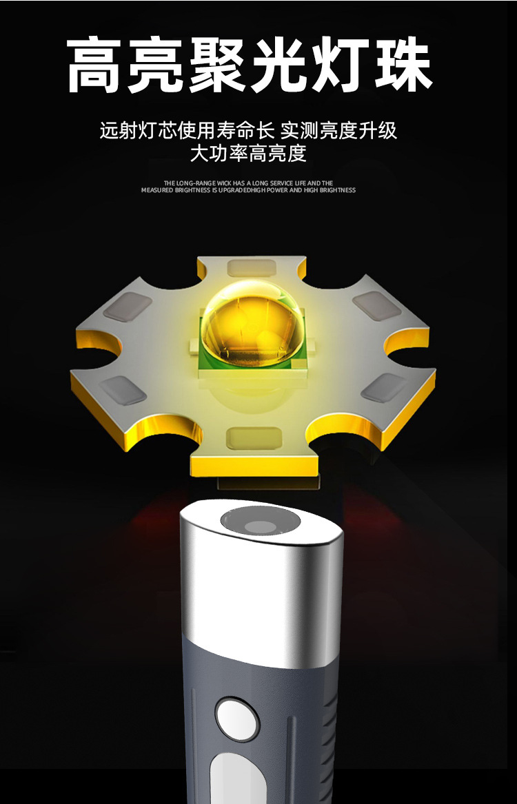 새로운 강한 빛 야외 손전등 led 측면 조명 충전 소형 휴대용 자기 방어 다기능 손전등 후크스토어 가기