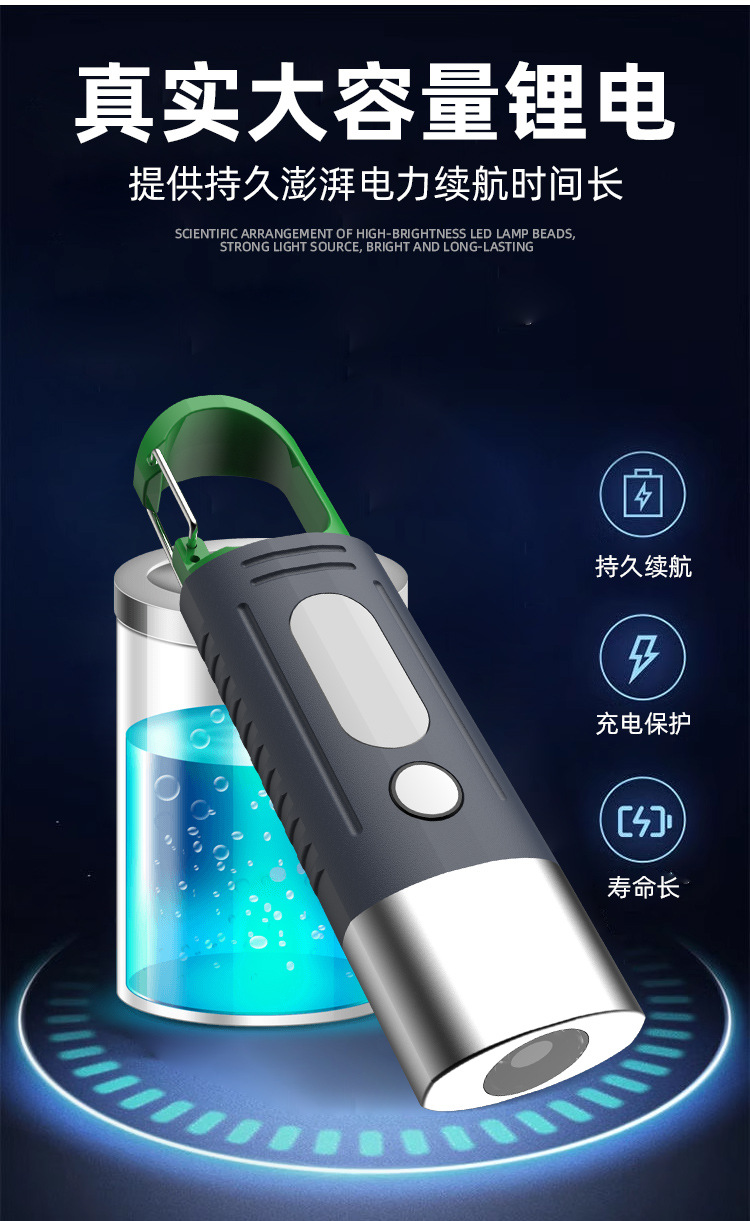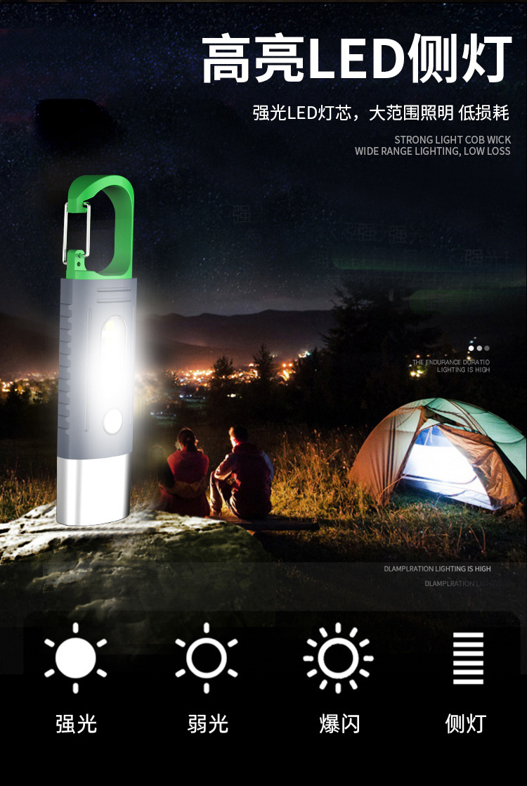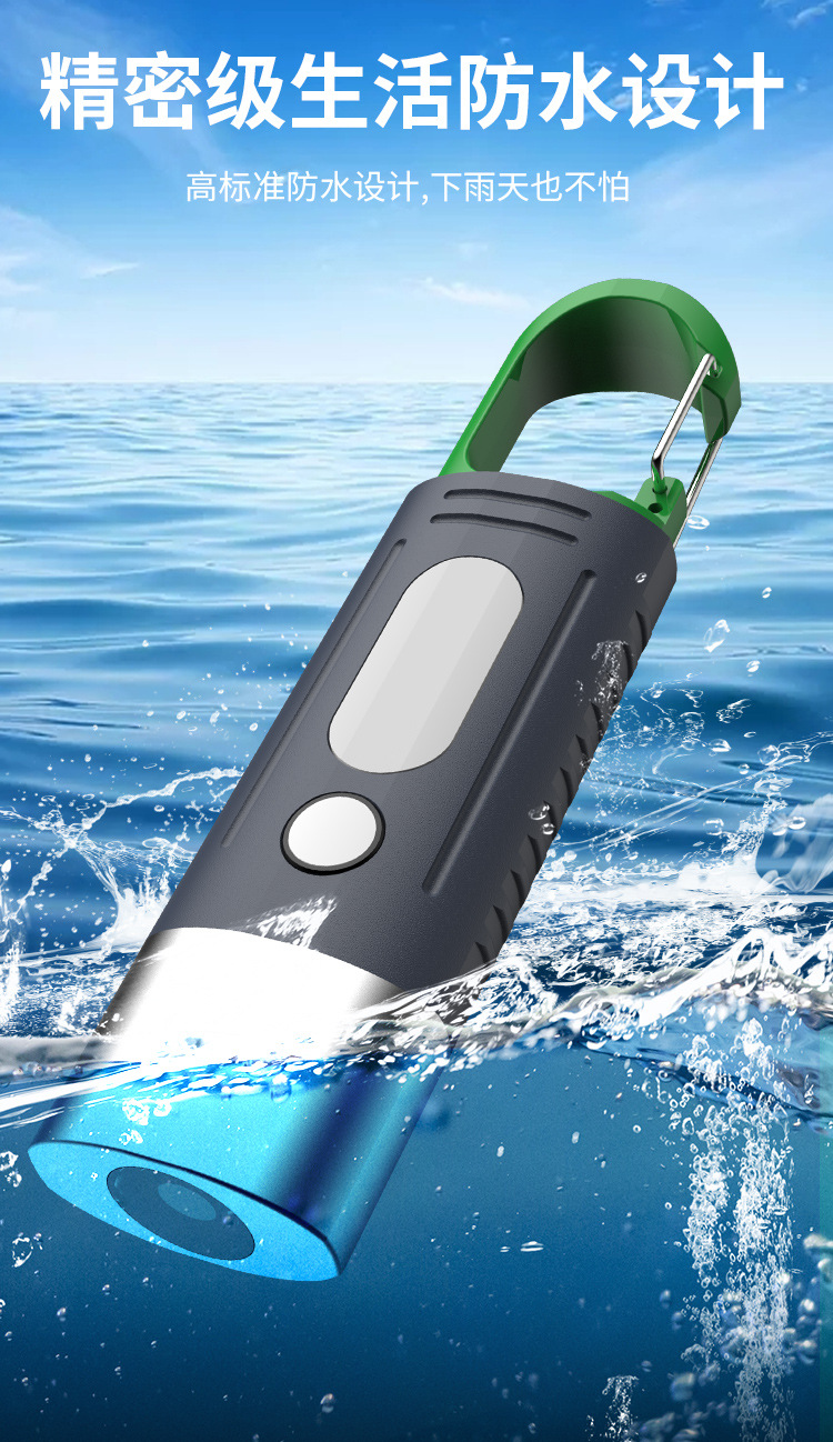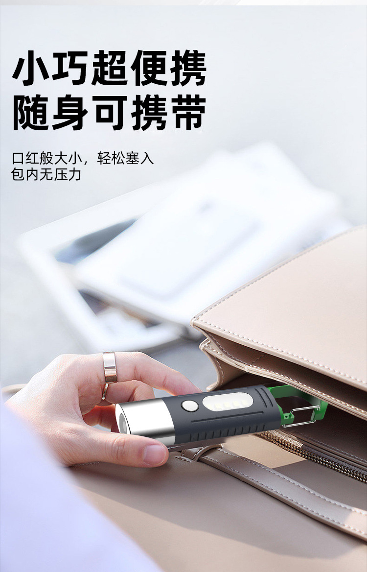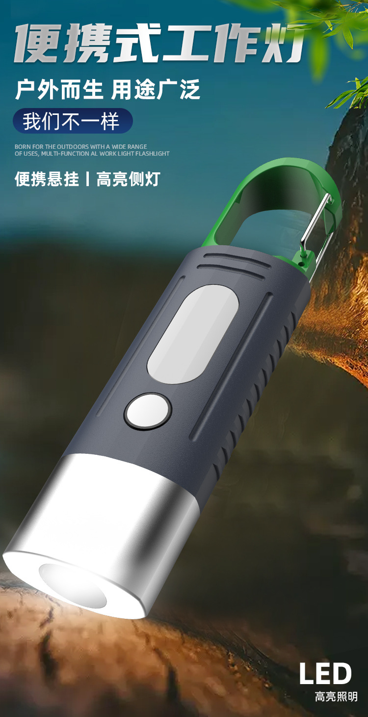새로운 강한 빛 야외 손전등 led 측면 조명 충전 소형 휴대용 자기 방어 다기능 손전등 후크