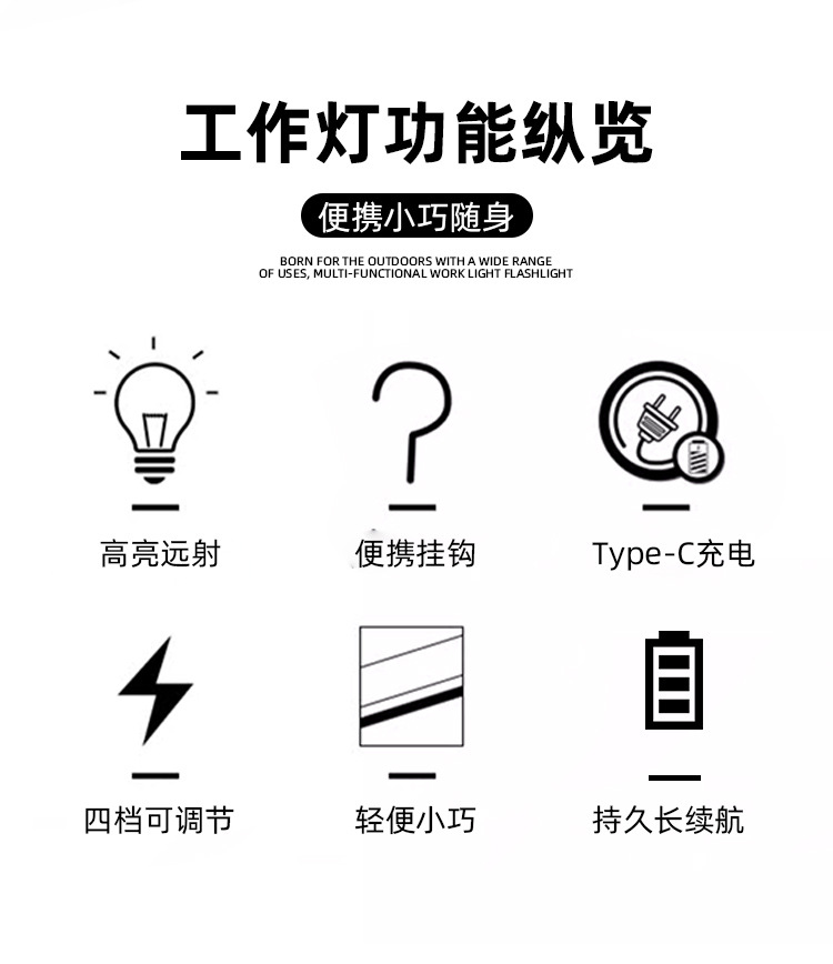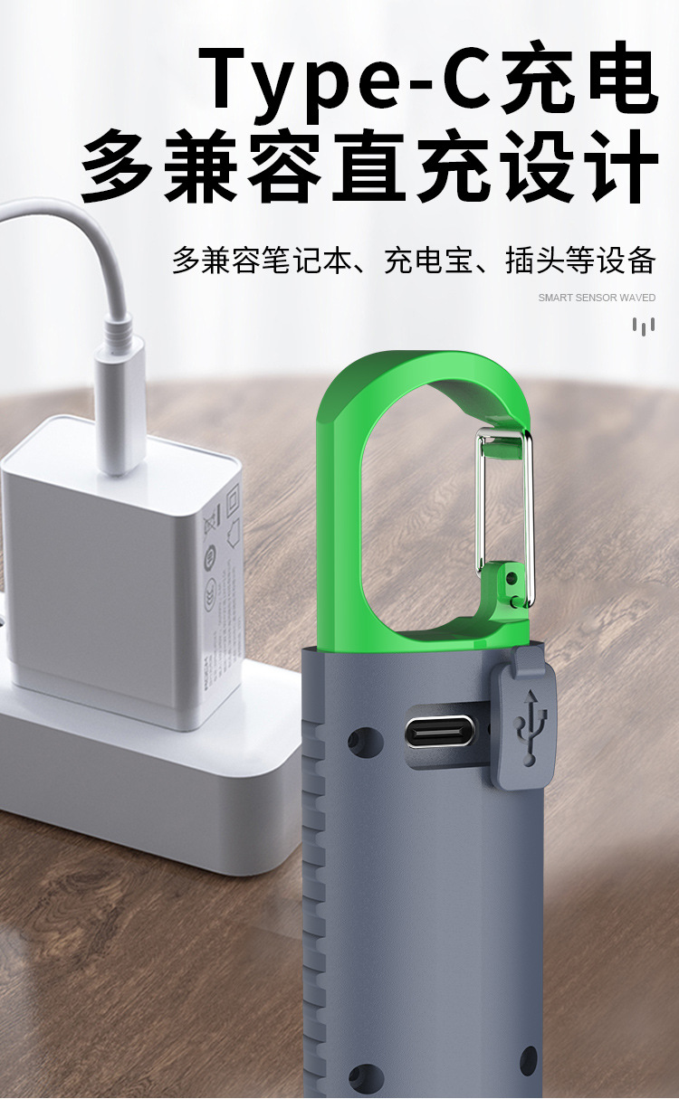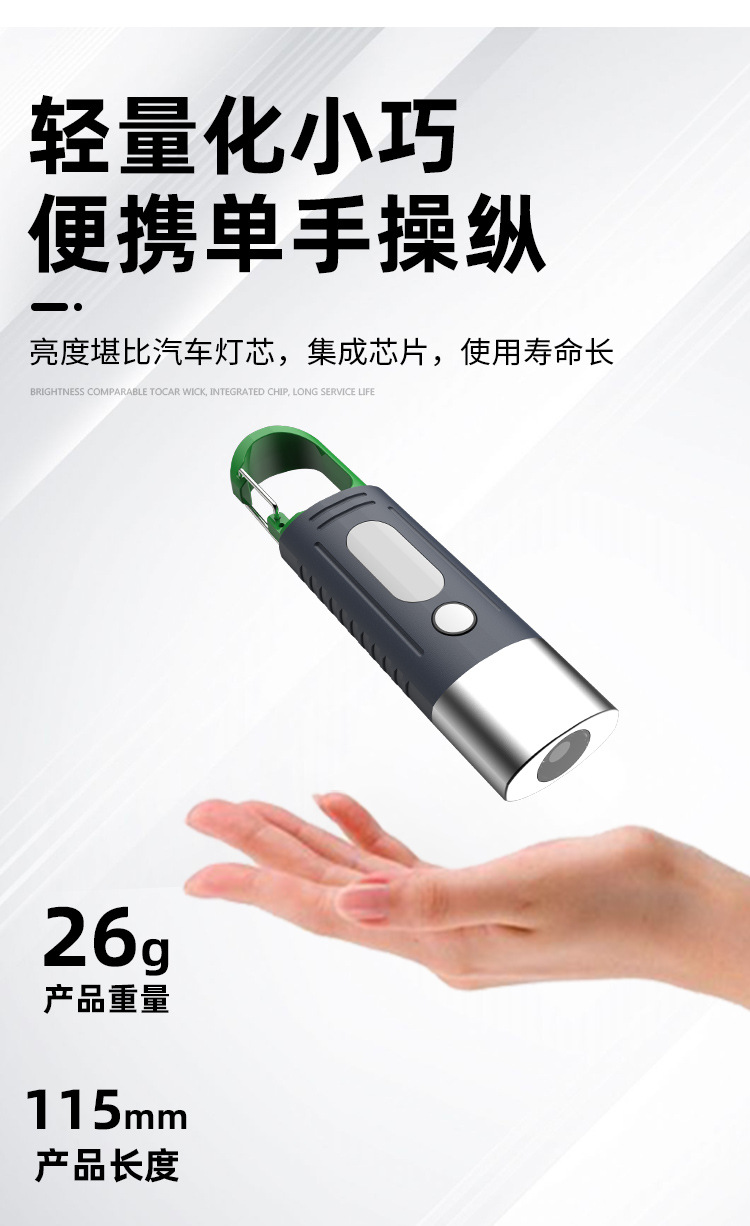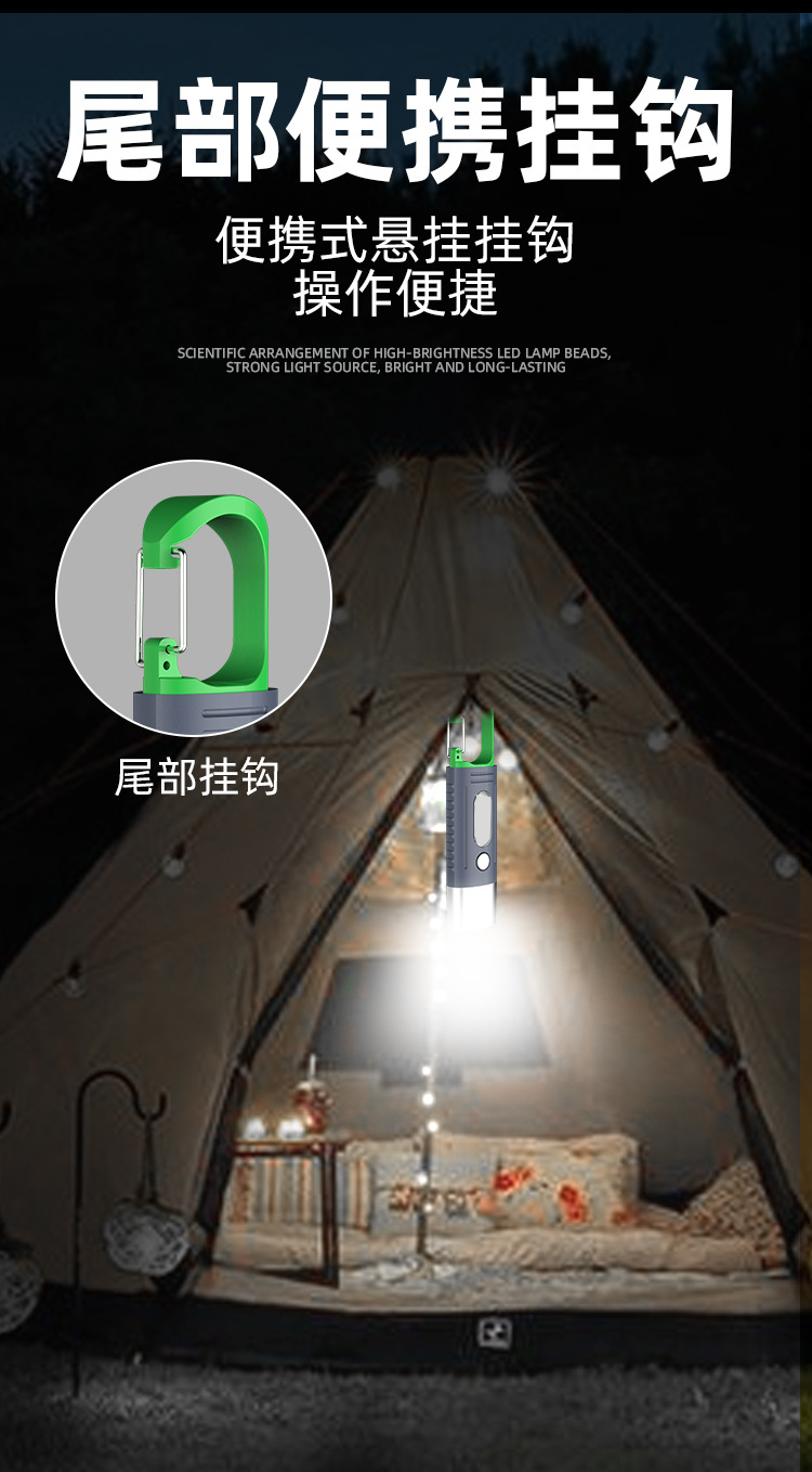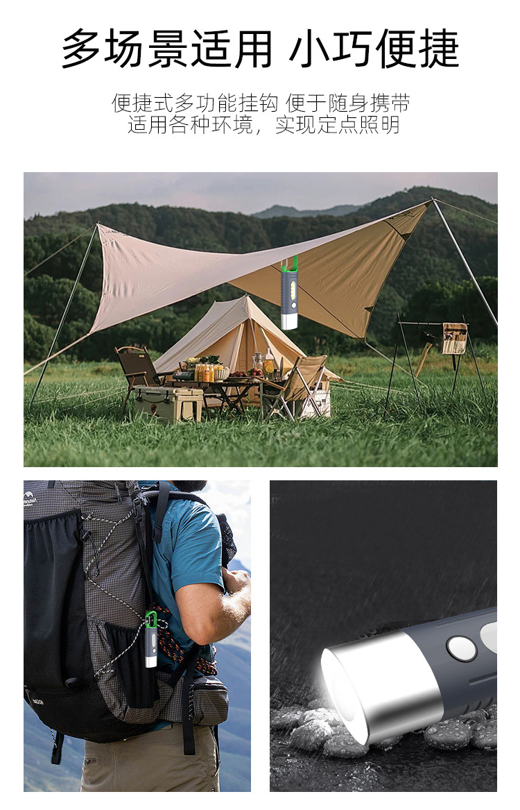 새로운 강한 빛 야외 손전등 led 측면 조명 충전 소형 휴대용 자기 방어 다기능 손전등 후크