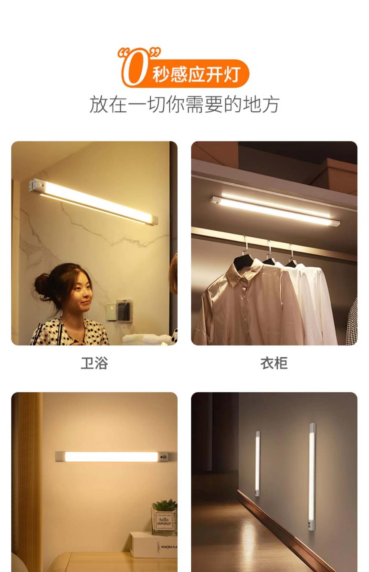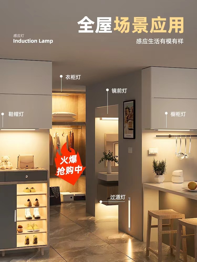 인체 센서 램프는 긴 스트립 램프, 캐비닛, 옷장 램프, 테이블 램프, 학습 분위기 램프, 현관 입구 야간 조명으로 가공 가능합니다.스토어 가기