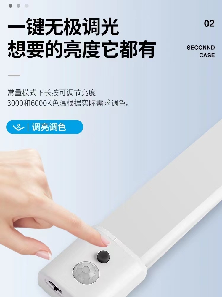 인체 센서 램프는 긴 스트립 램프, 캐비닛, 옷장 램프, 테이블 램프, 학습 분위기 램프, 현관 입구 야간 조명으로 가공 가능합니다.