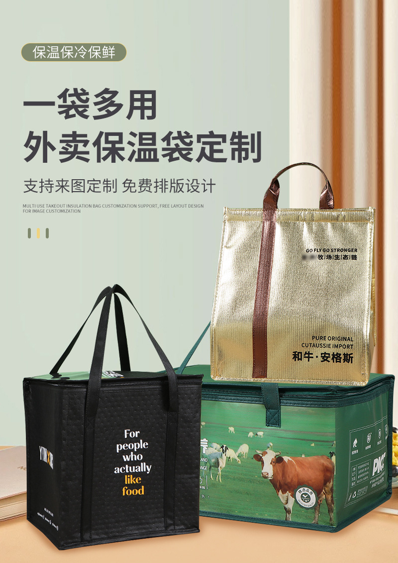쇠고기와 양고기 테이크 아웃 단열 가방 맞춤형 신선한 냉장 해산물 장기 냉장 방수 보존 가방 알루미늄 호일 단열 가방