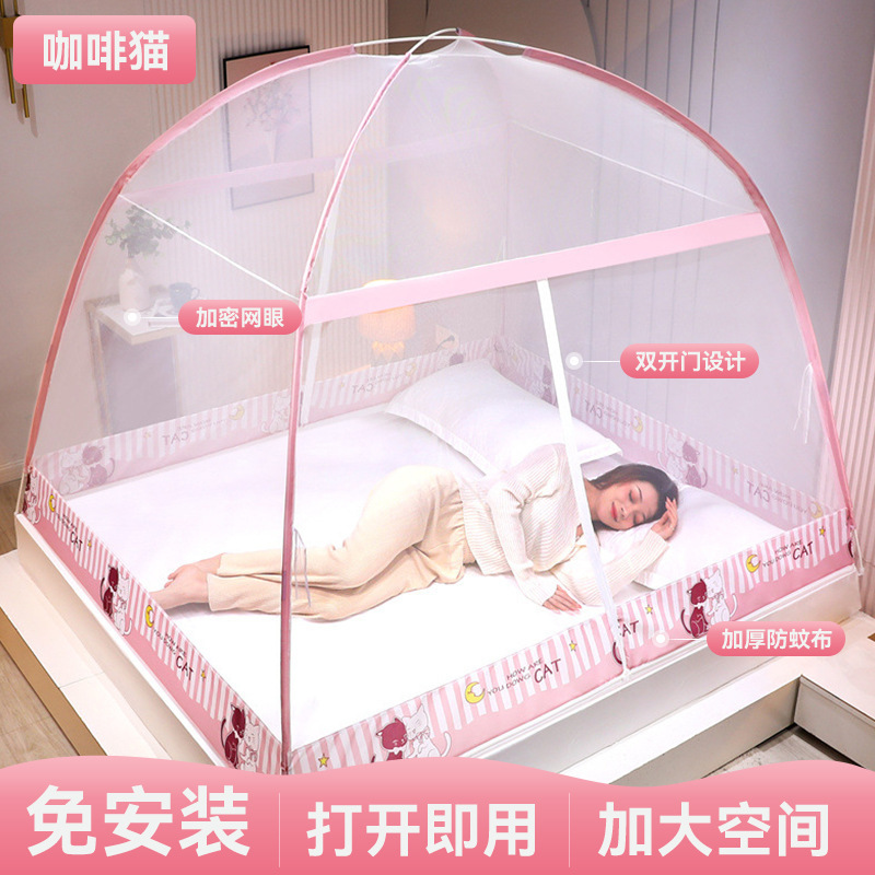설치 무료 아기 안티 드롭 모기장 모든 덮음 하단 교수형 팬 안티 드롭 침대 간단한 접는 게으른 몽골 유르트 굵게