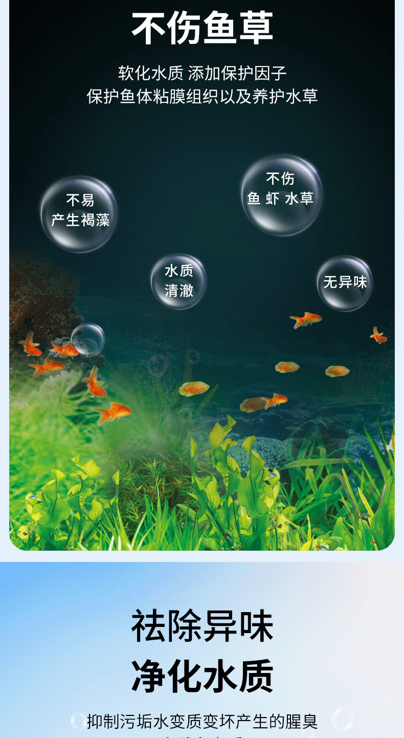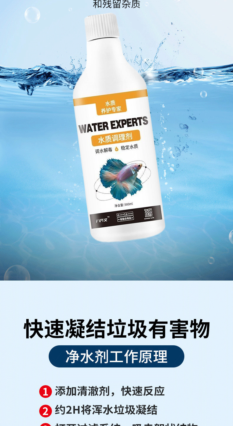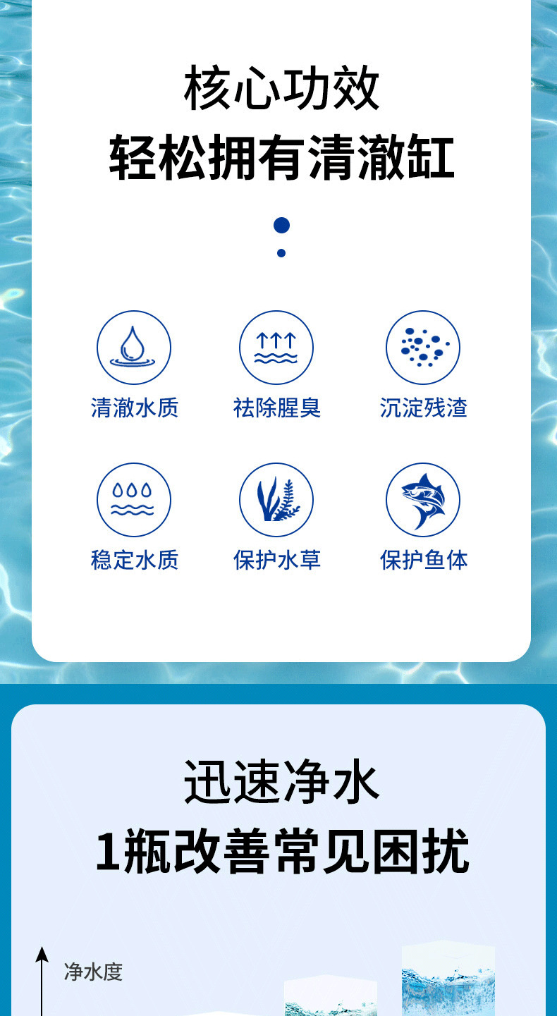 수질 안정제, 수족관 정수 조절제, 중금속 제거, 태양광 살균, 염소 제거, 물고기 및 거북이용 정수제, 수족관용