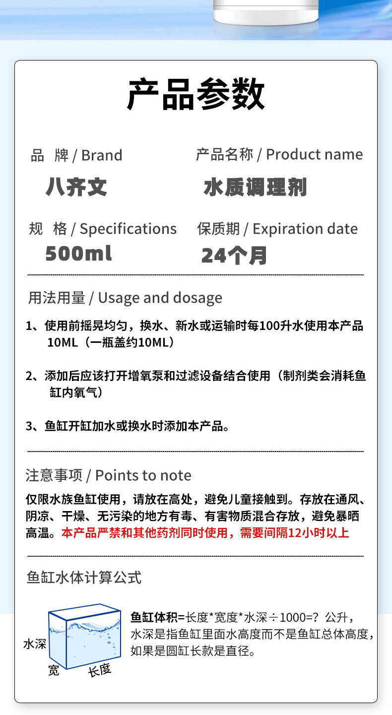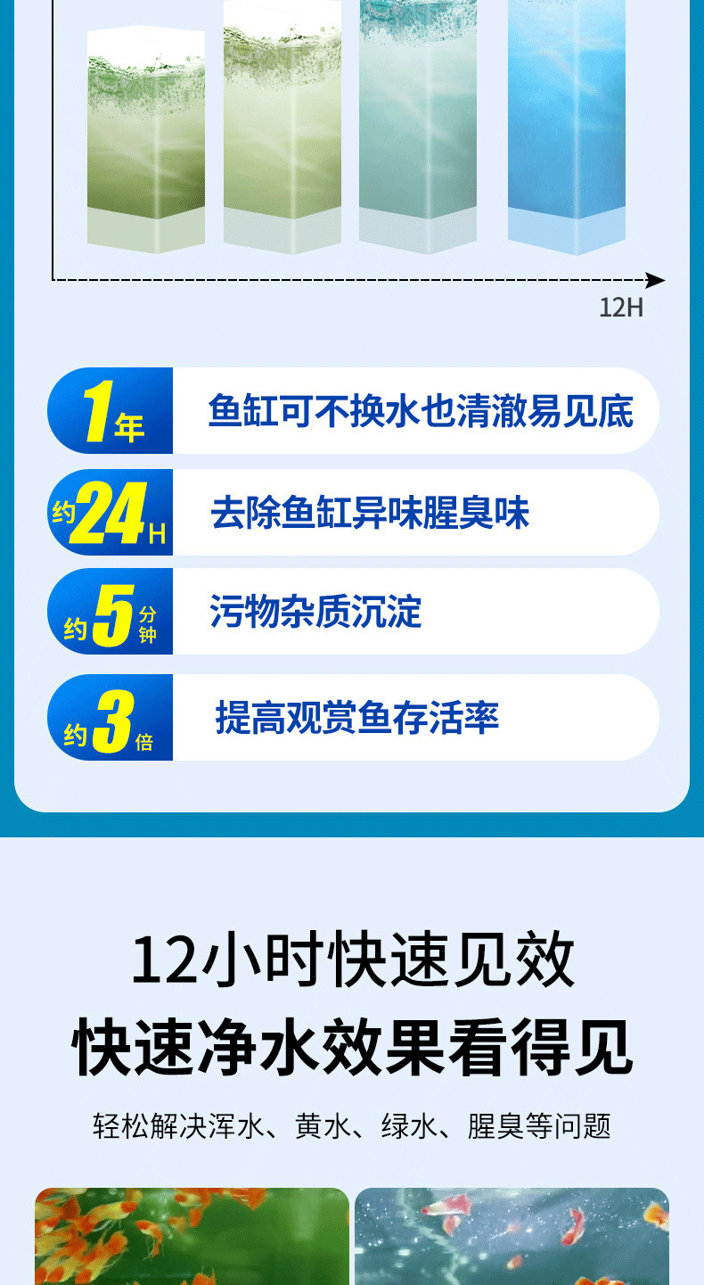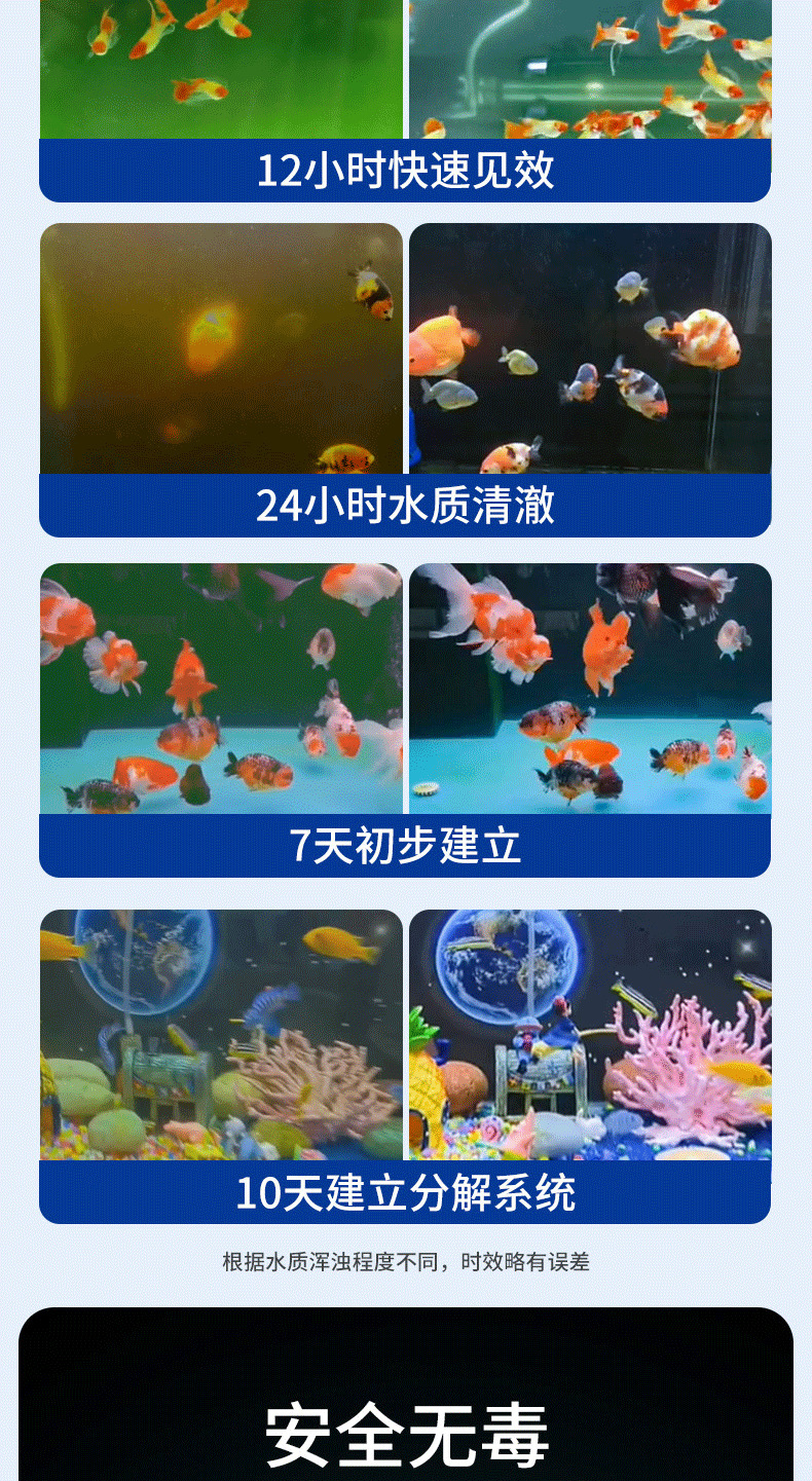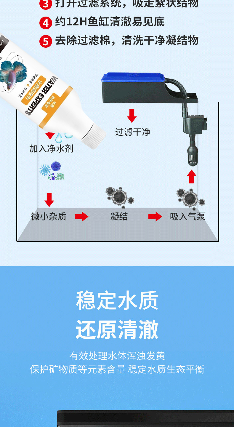 수질 안정제, 수족관 정수 조절제, 중금속 제거, 태양광 살균, 염소 제거, 물고기 및 거북이용 정수제, 수족관용