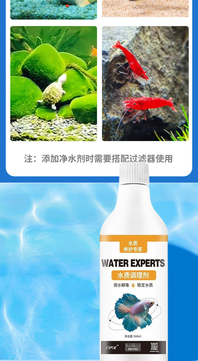 수질 안정제, 수족관 정수 조절제, 중금속 제거, 태양광 살균, 염소 제거, 물고기 및 거북이용 정수제, 수족관용스토어 가기