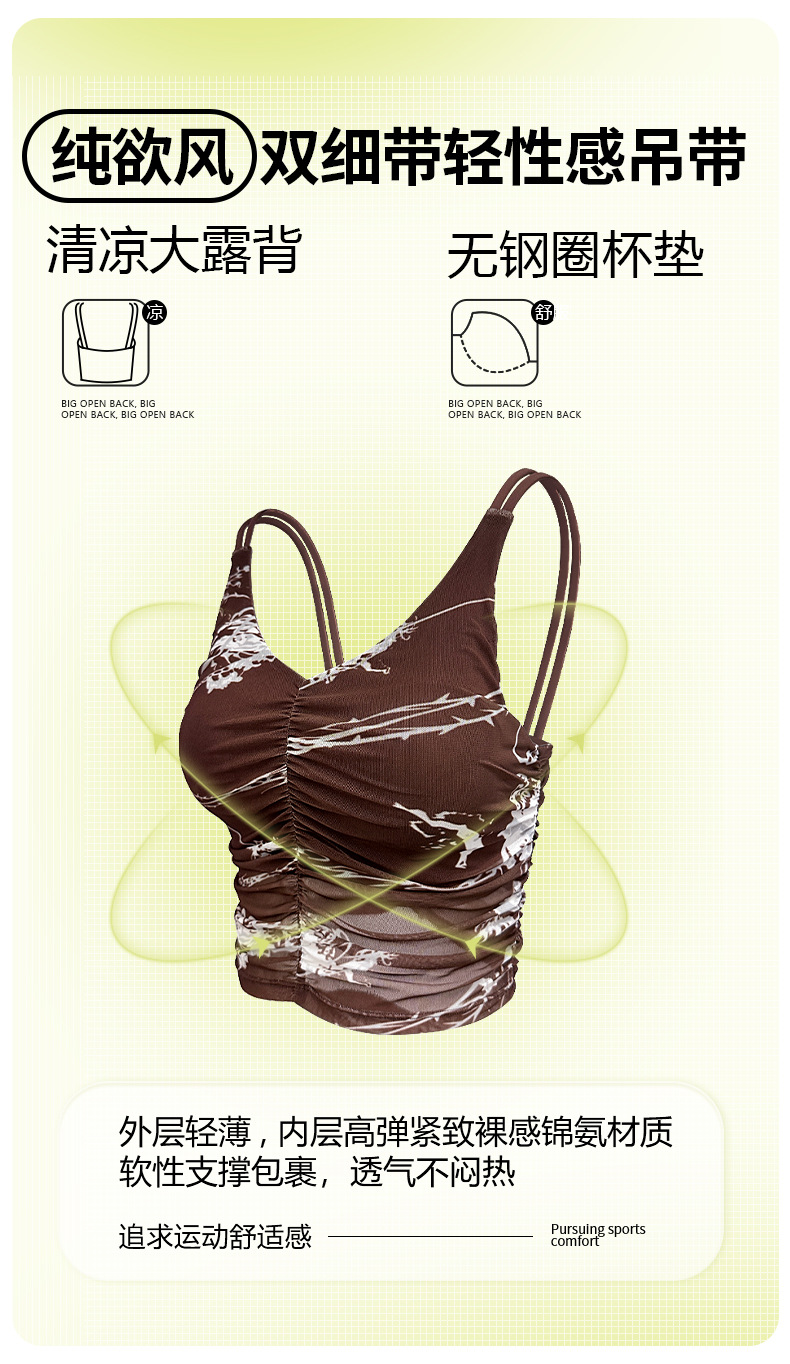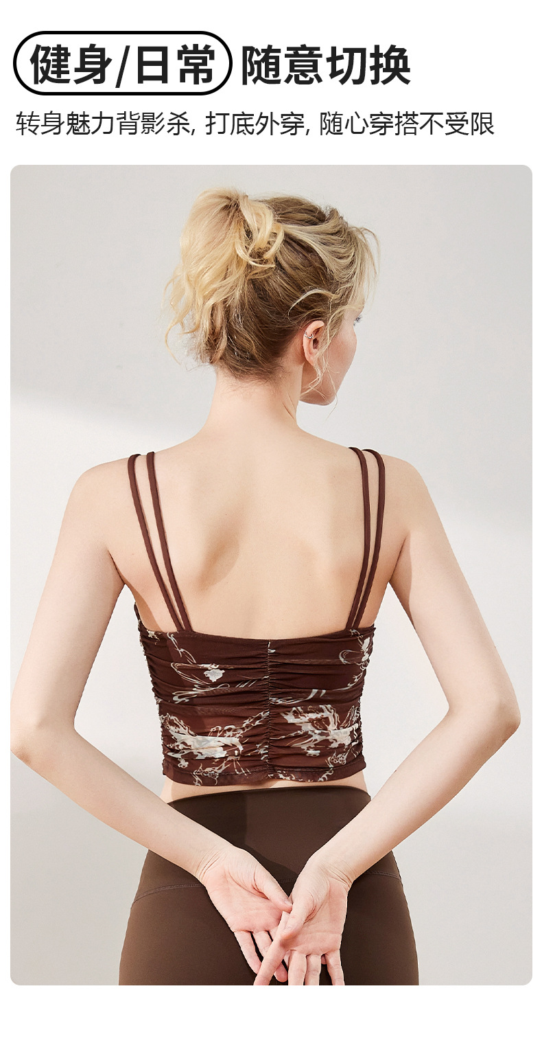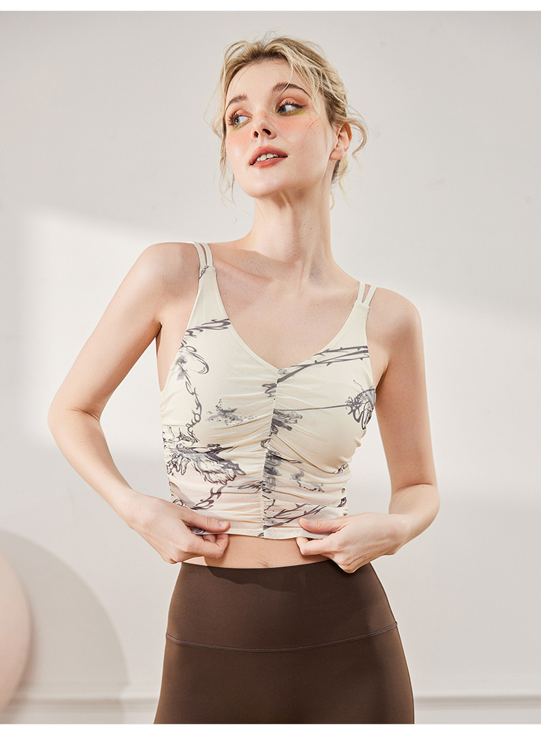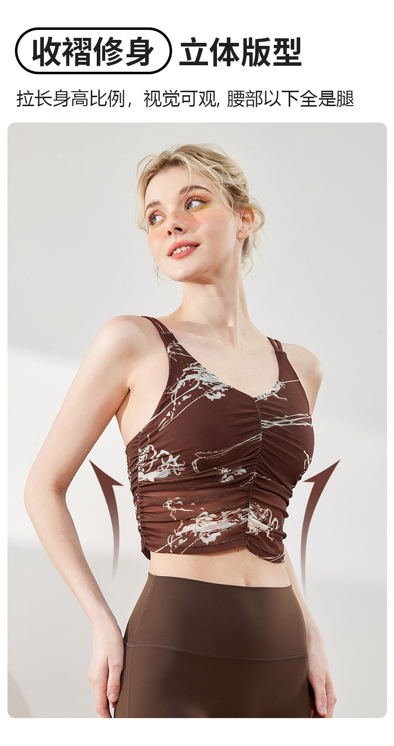 여성을위한 요가 옷 여름 새로운 주름 인쇄 슬링 ebb 조끼 스포츠 야외 고강도 속건성 피트니스 의류