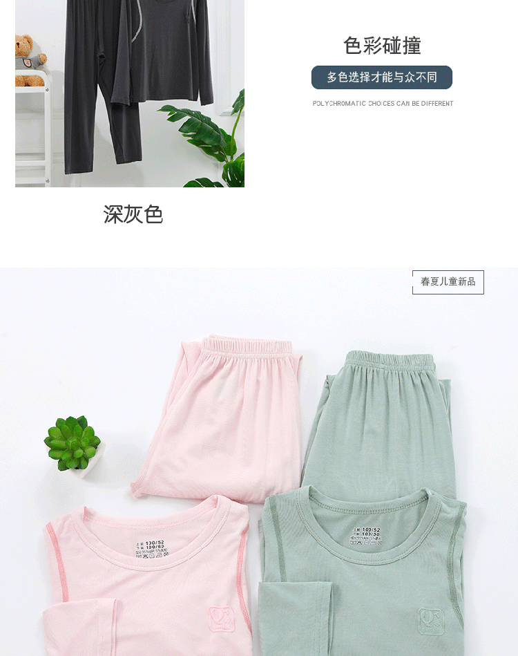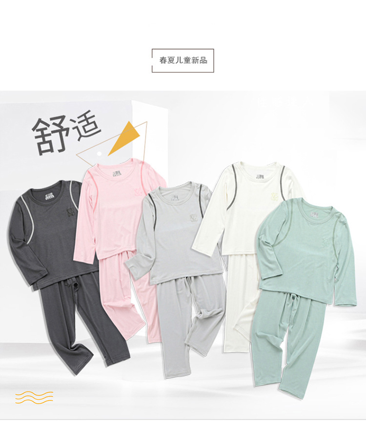 소년 소녀를위한 새로운 어린이 잠옷 봄 및 여름 에어컨 세트 대형 어린이 트레이너리스 9 소매 바지 홈 의류 세트
