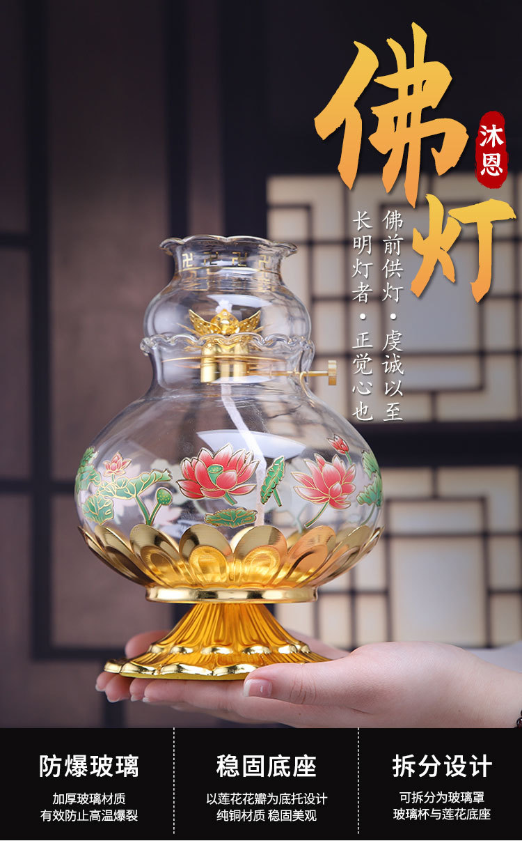 유리 오일 램프 가구 부처님 램프 램프 두꺼운 앞 유리 램프 긴 램프 액체 버터 램프 부처님 공급 도매