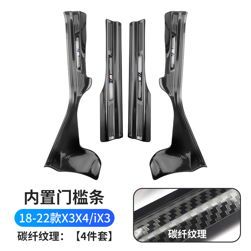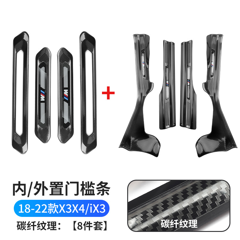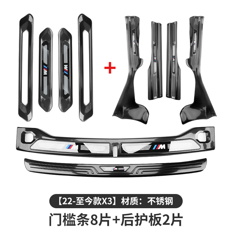 • 22-24 모델 X3(문턱 스트립 + 후면 가드 10개) 탄소 섬유 패턴/컬러 라벨 포함