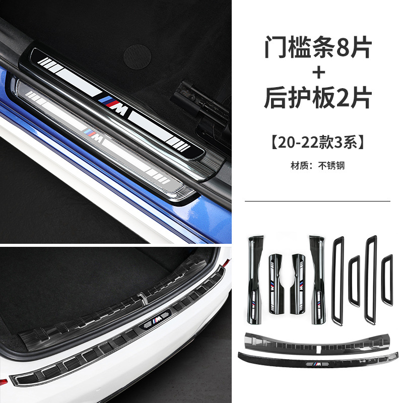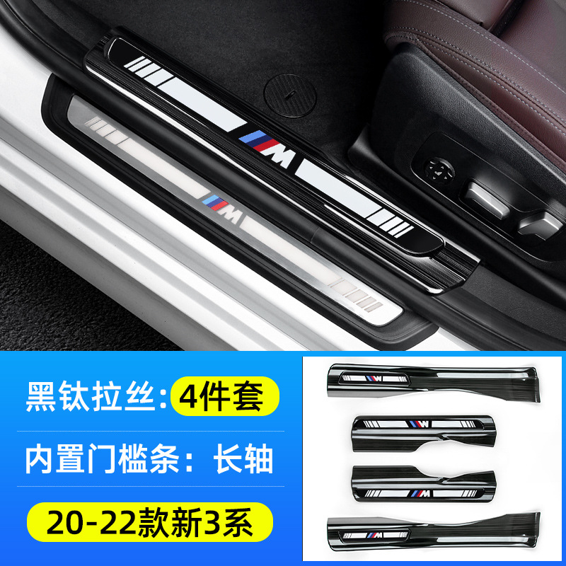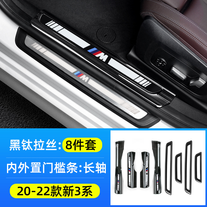 • 20-22 모델 3 시리즈 장축(문턱 스트립 + 리어 가드 10개) 스테인레스 스틸 블랙 티타늄 색상