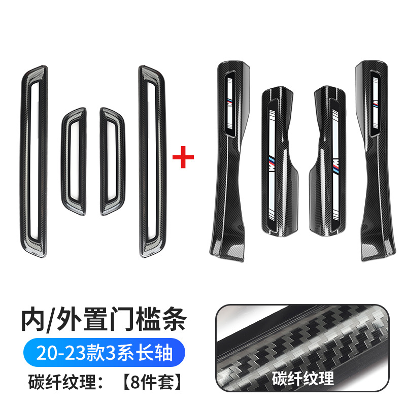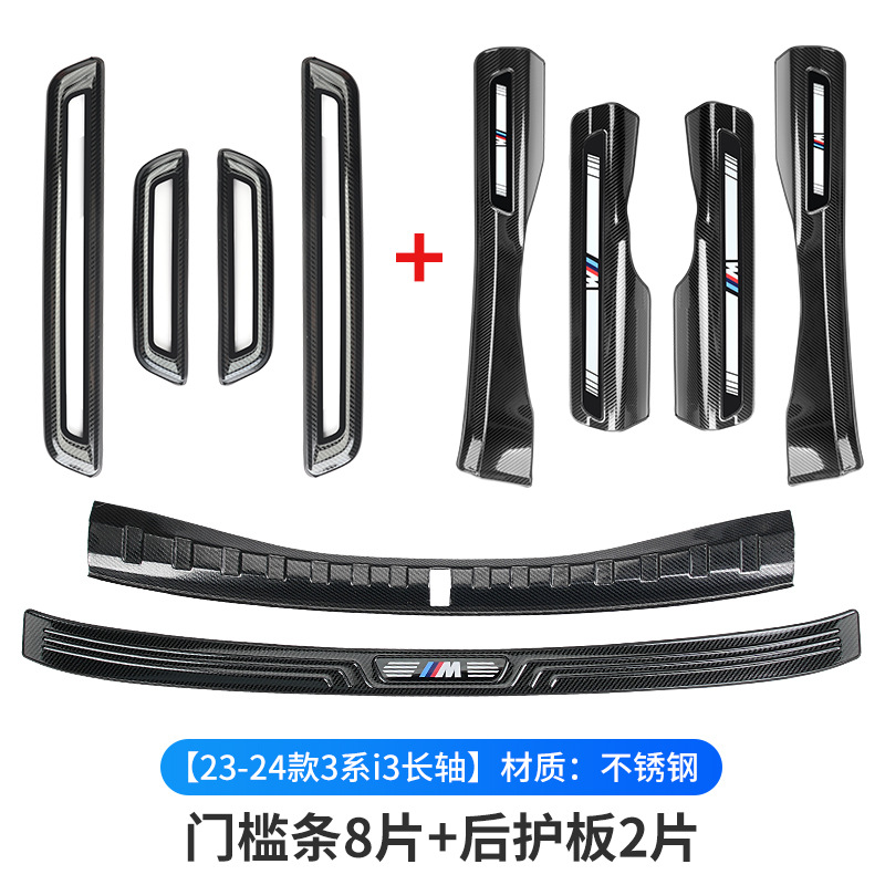 • 23-24 모델 3 시리즈 i3 장축(문턱 스트립 + 후면 가드 10개) 탄소 섬유 패턴(색상 포함)
