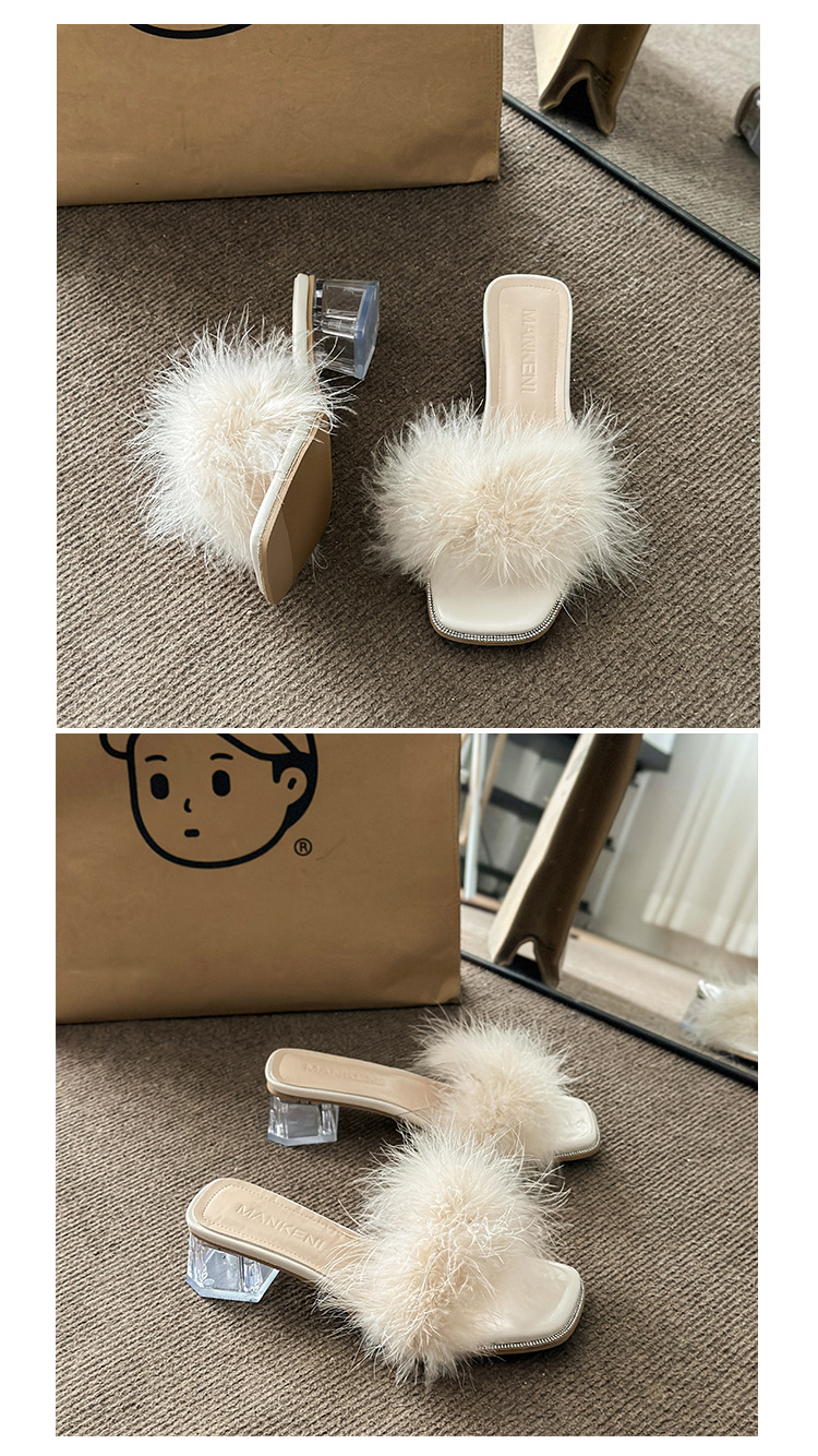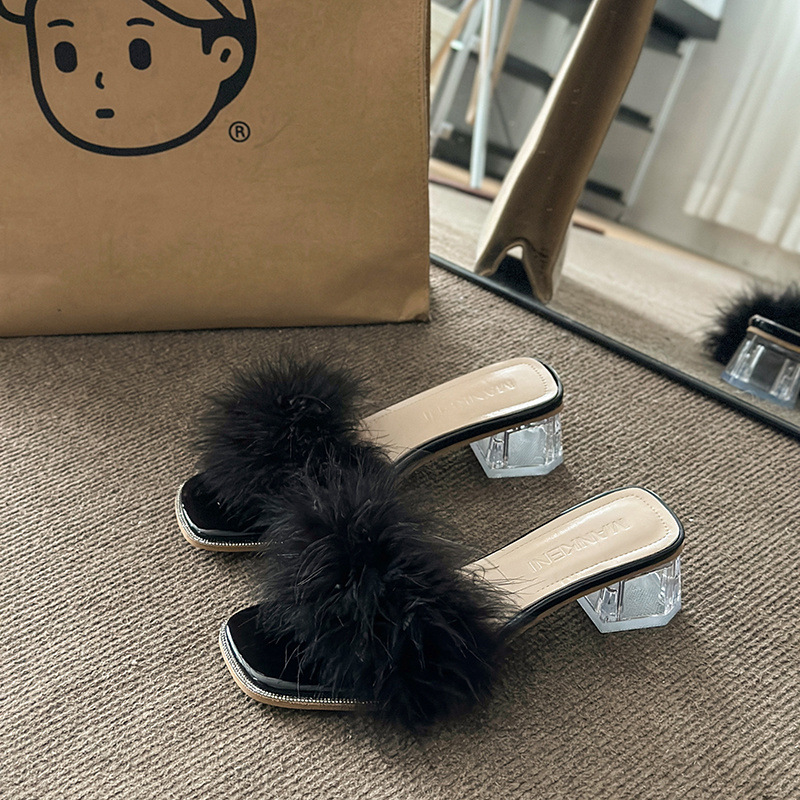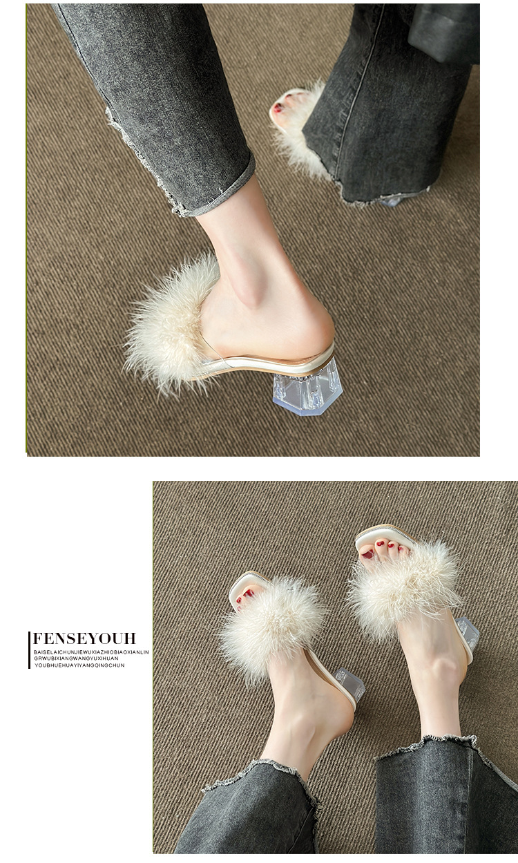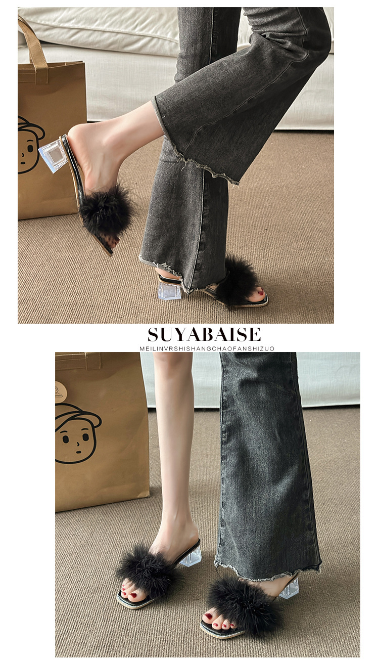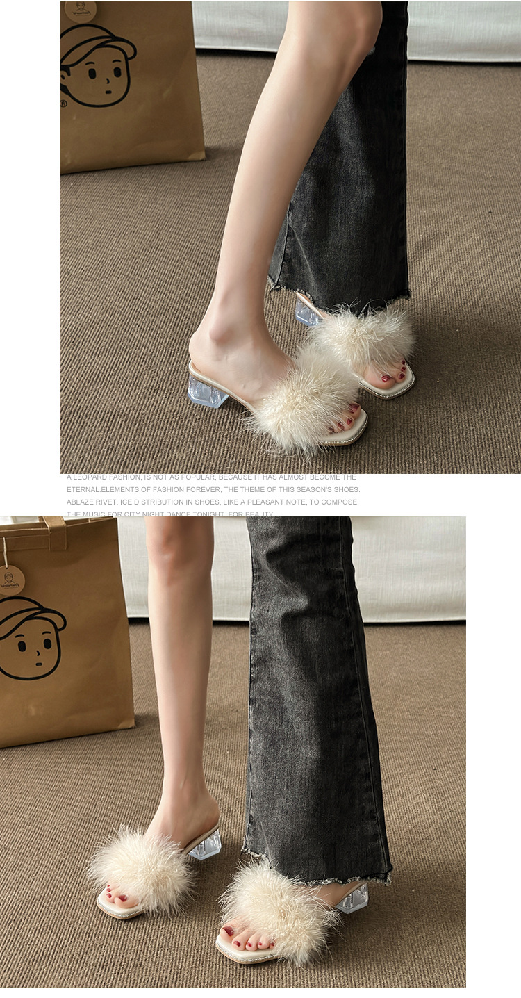 마오 마오 슬리퍼 여성 여름 2024 봄 새 스타일 신발 여성 신발 샌들 두꺼운 힐 두꺼운 단독 투명 하이힐 플러시 샌들