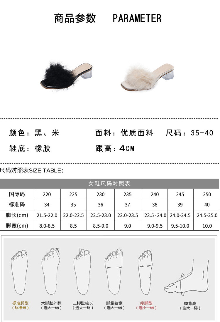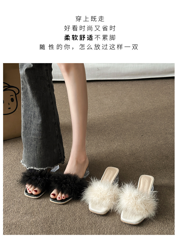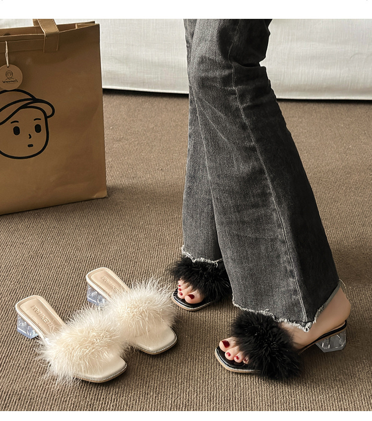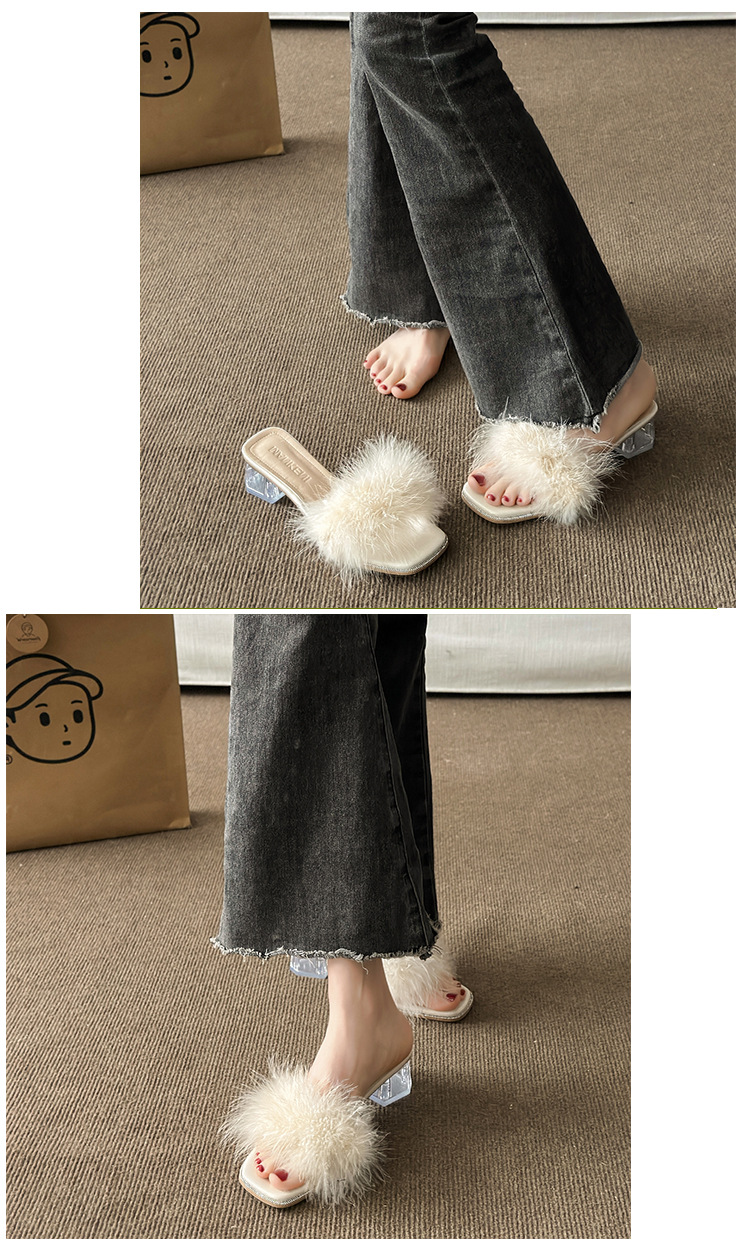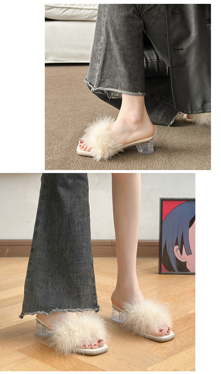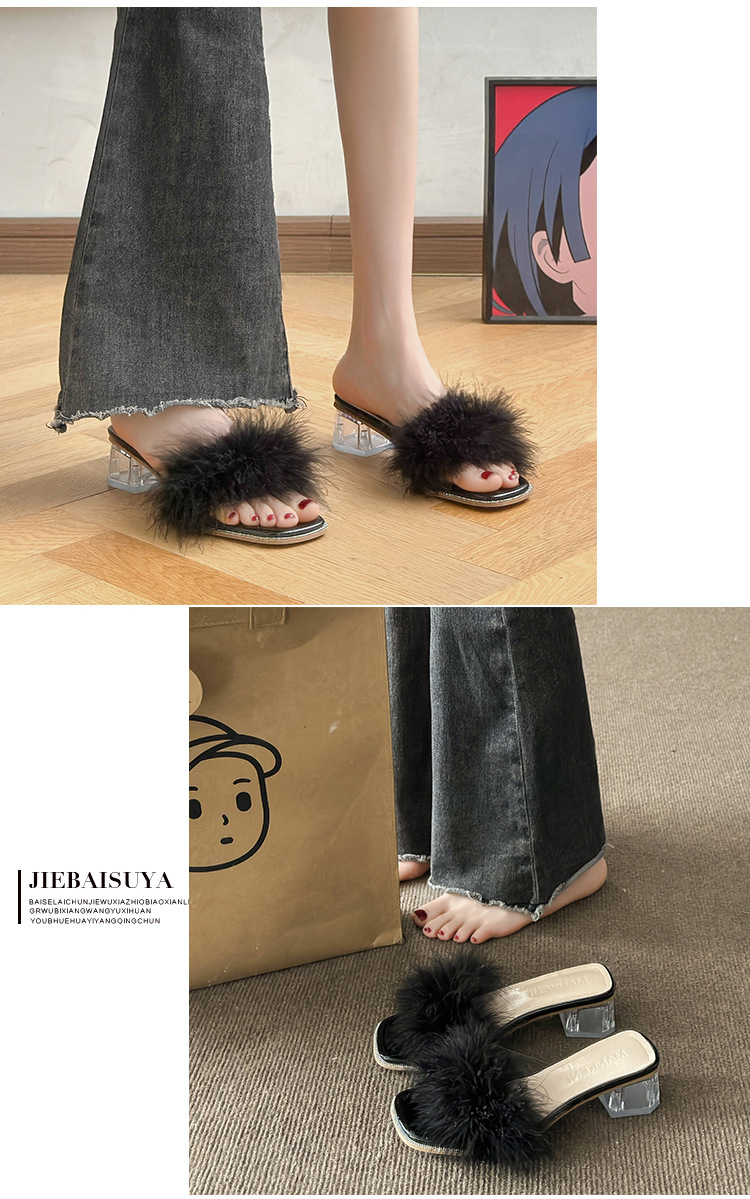 마오 마오 슬리퍼 여성 여름 2024 봄 새 스타일 신발 여성 신발 샌들 두꺼운 힐 두꺼운 단독 투명 하이힐 플러시 샌들