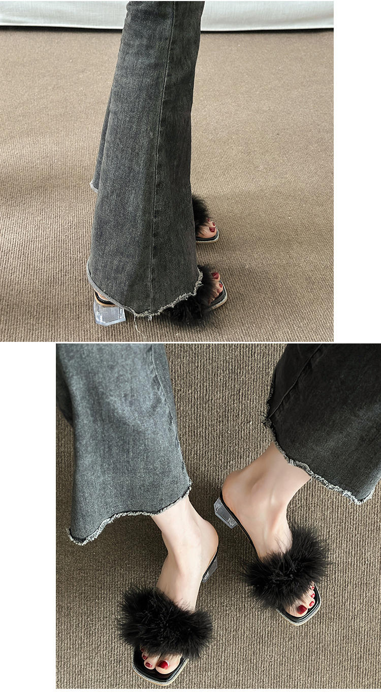 마오 마오 슬리퍼 여성 여름 2024 봄 새 스타일 신발 여성 신발 샌들 두꺼운 힐 두꺼운 단독 투명 하이힐 플러시 샌들스토어 가기