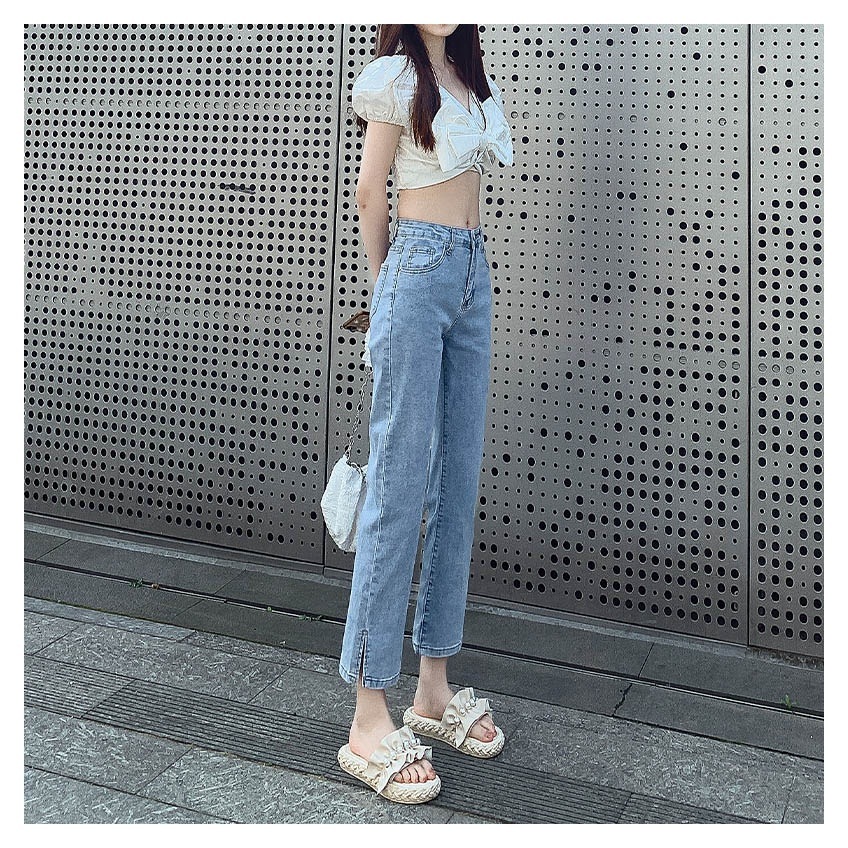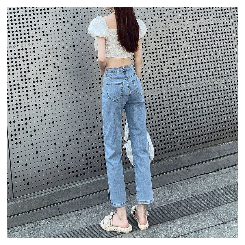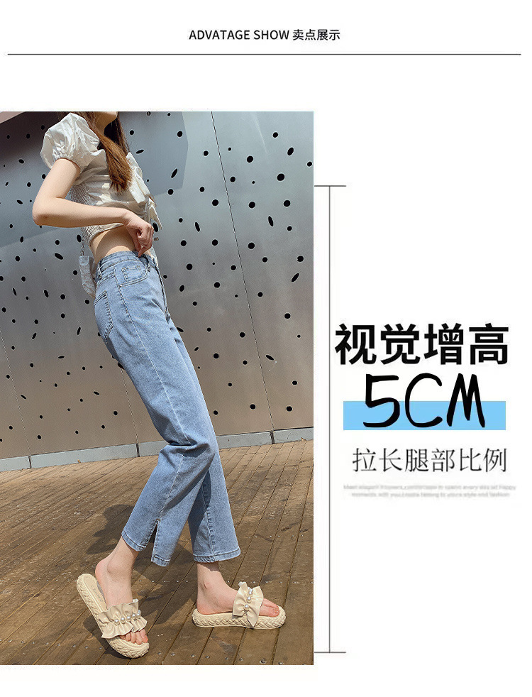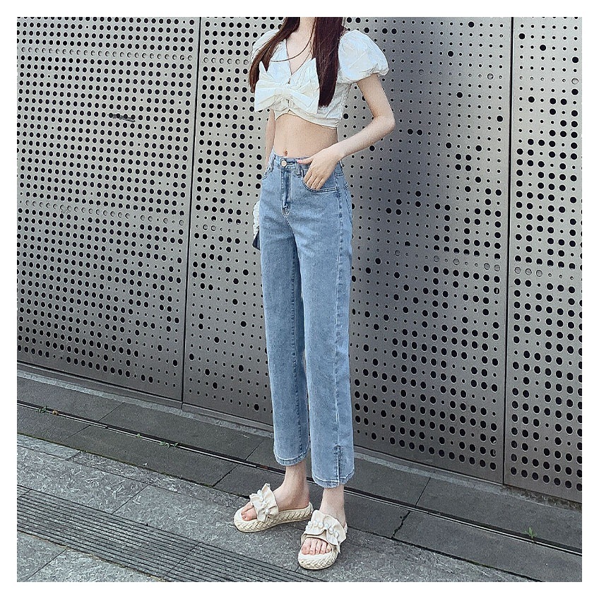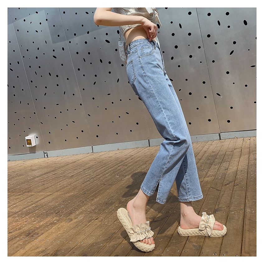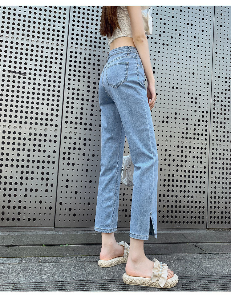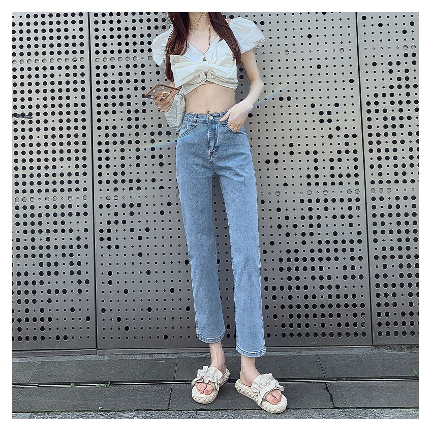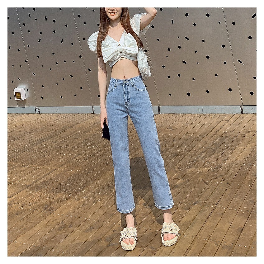 여자 올 매치 여름 얇은 새로운 높은 허리 슬리밍 스트레이트 튜브 바지스토어 가기