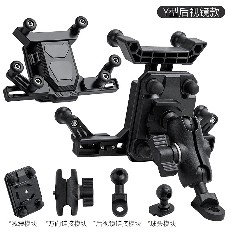 오토바이 휴대 전화 브래킷 전기 휴대 전화 브래킷 알루미늄 합금 지원 프레임 360 ° 회전 조정 충격 방지 블록