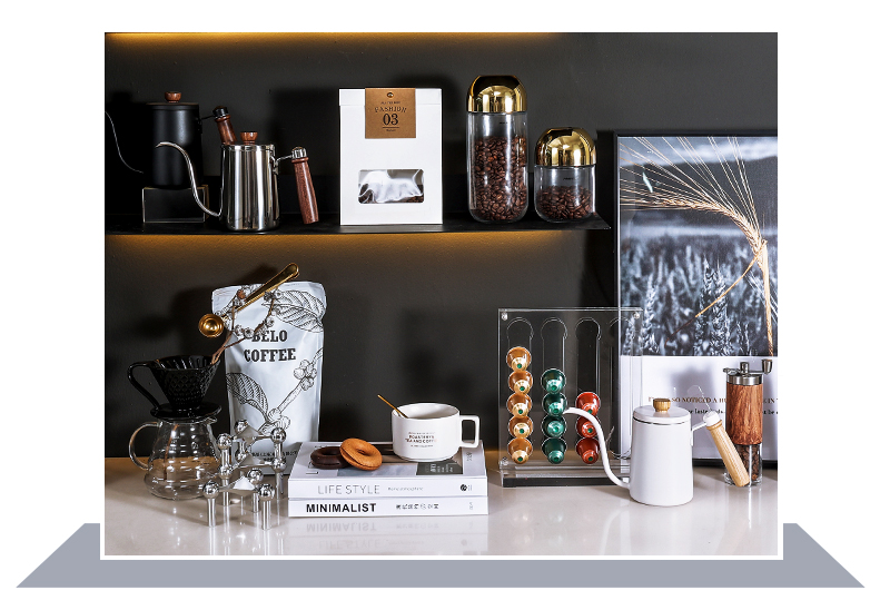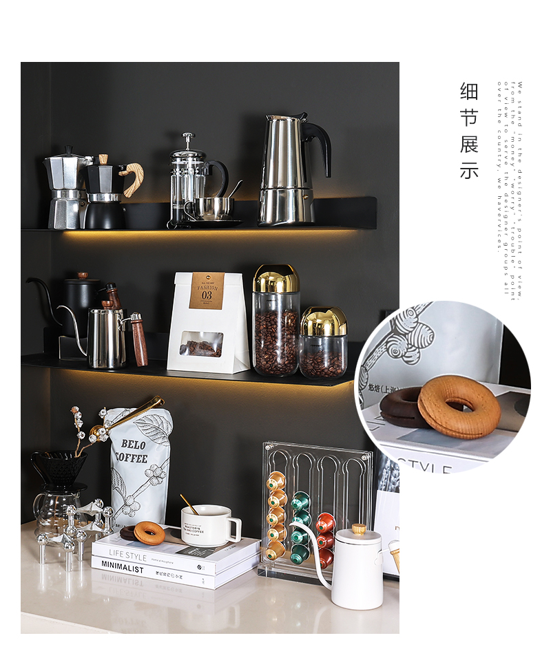모델 룸 주방 커피 테마 일치하는 장식 커피 랙 저장 항아리 캔들 스틱 교수형 그림 장식품 전시실
