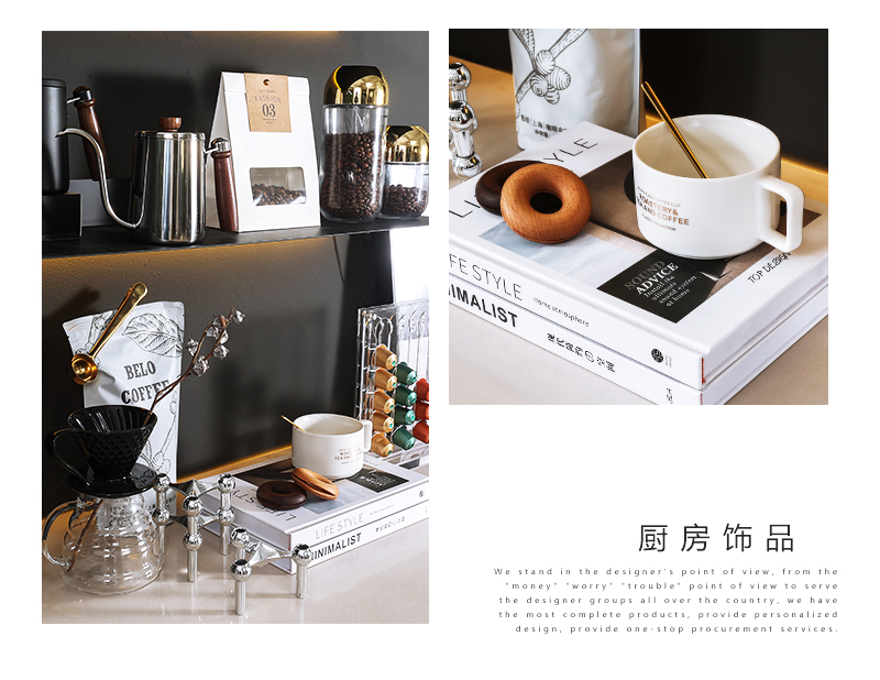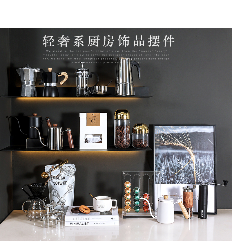 모델 룸 주방 커피 테마 일치하는 장식 커피 랙 저장 항아리 캔들 스틱 교수형 그림 장식품 전시실스토어 가기