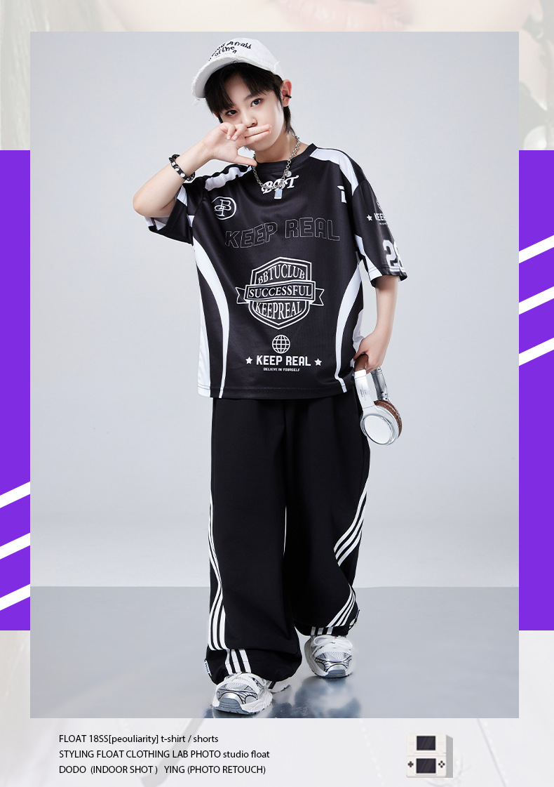 • JW18 검은 색 빠른 건조 반팔 CK01 검은 줄무늬 바지 흰색 야구 모자