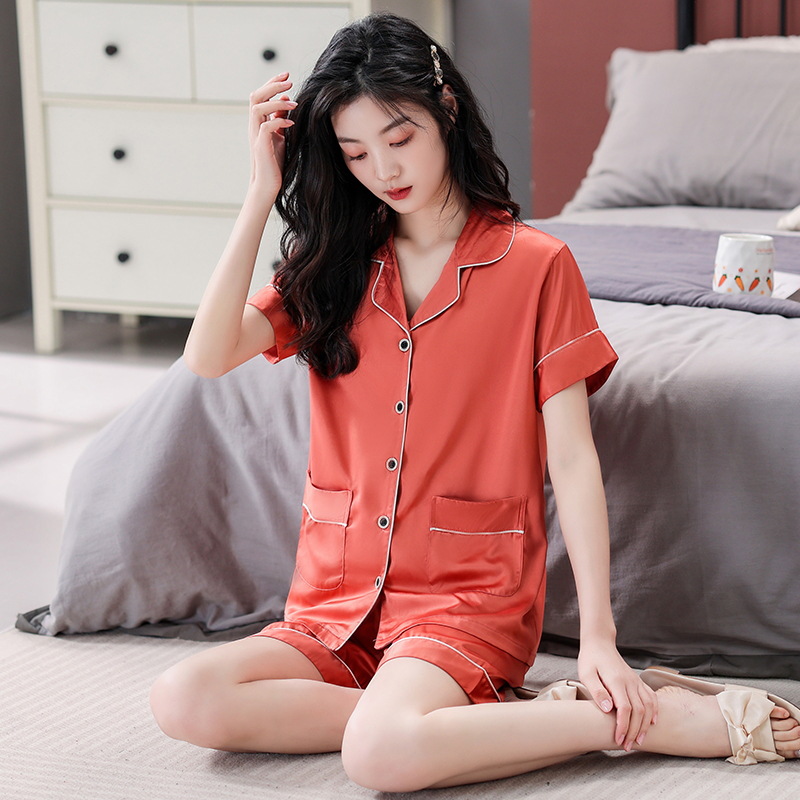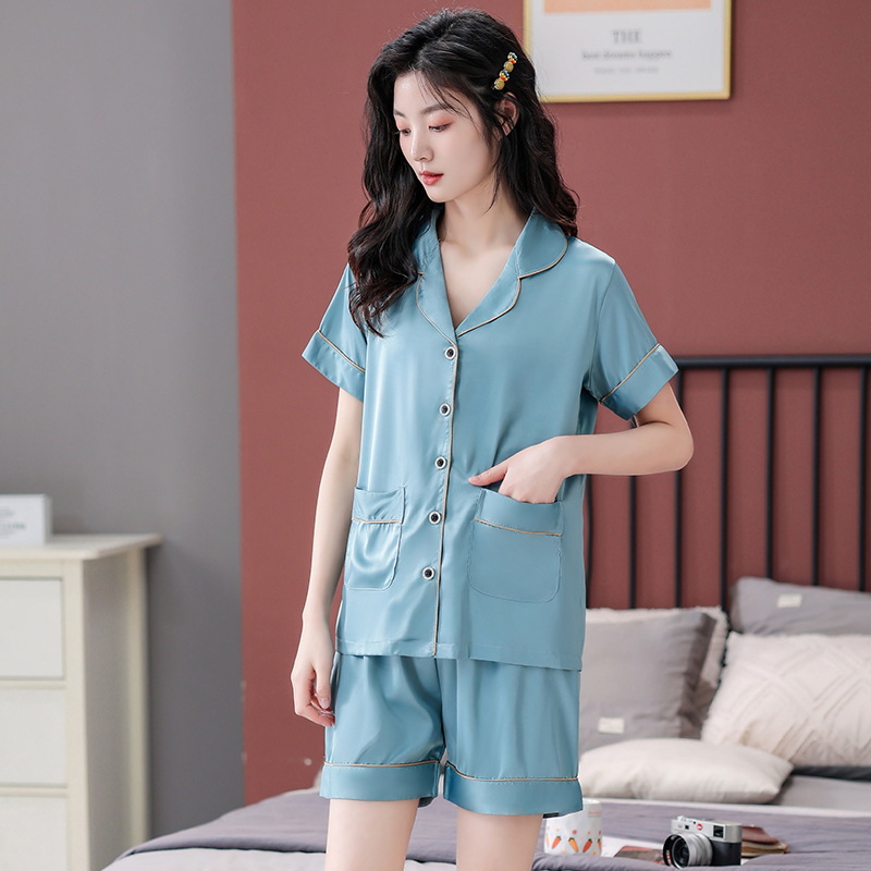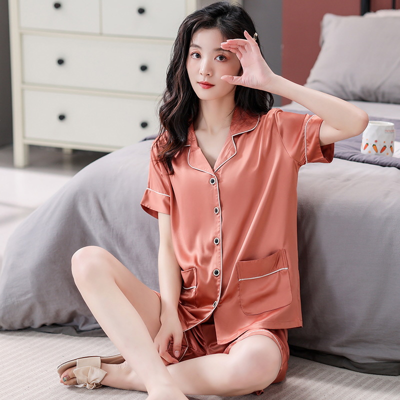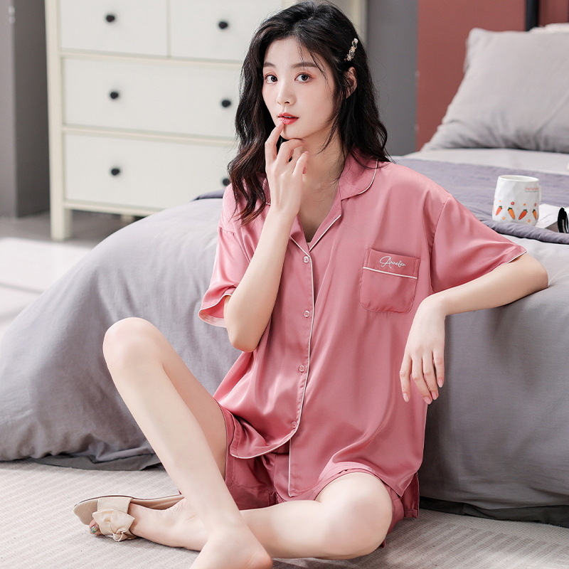 폭발 여성 잠옷 여름 얇은 아이스 실크 짧은 소매 반바지 캐주얼 카디건 여름 겉옷 홈 의류 세트