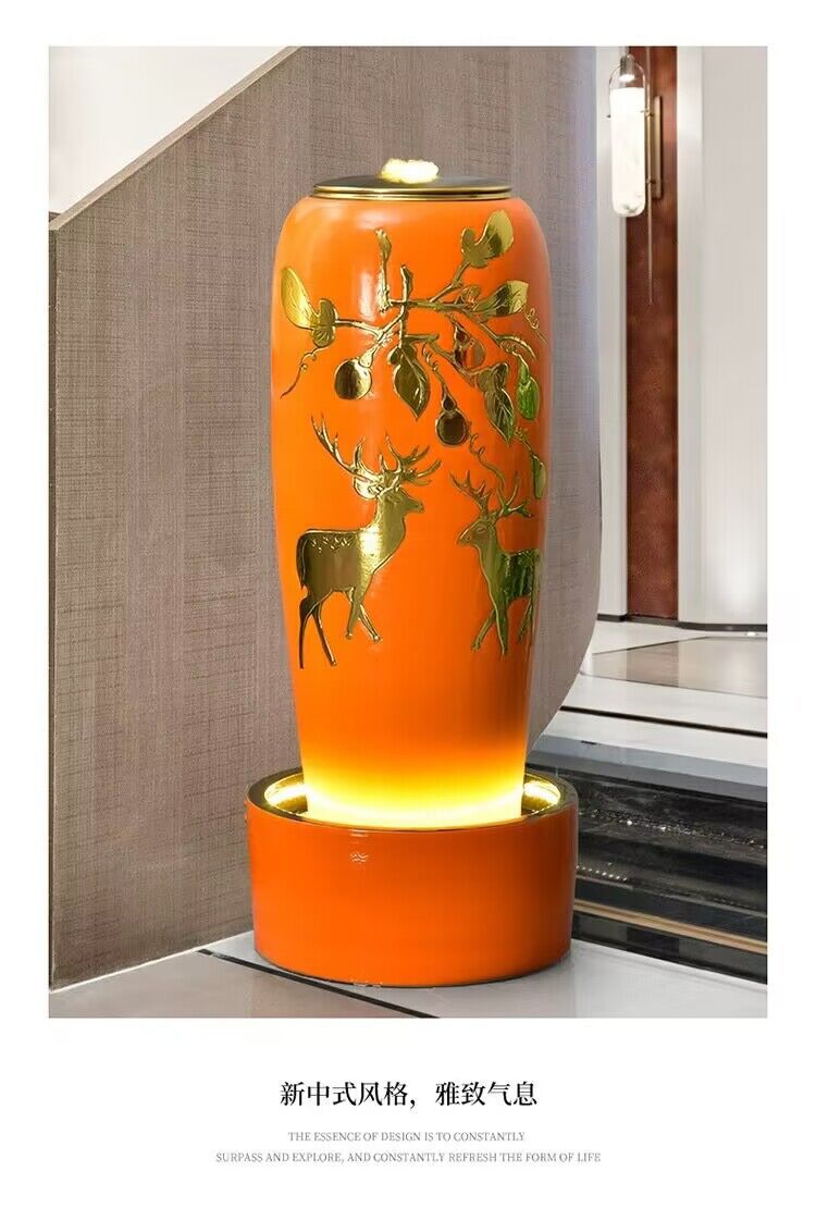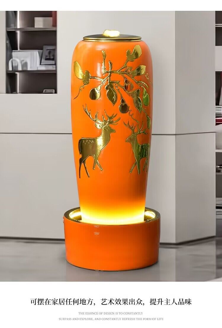 세라믹 물 분수 장식 거실 사무실 가습기 홈 장식 물고기 탱크 풍수 부 바닥 장식스토어 가기
