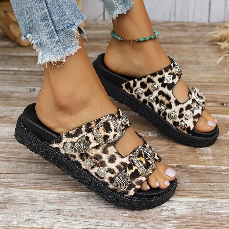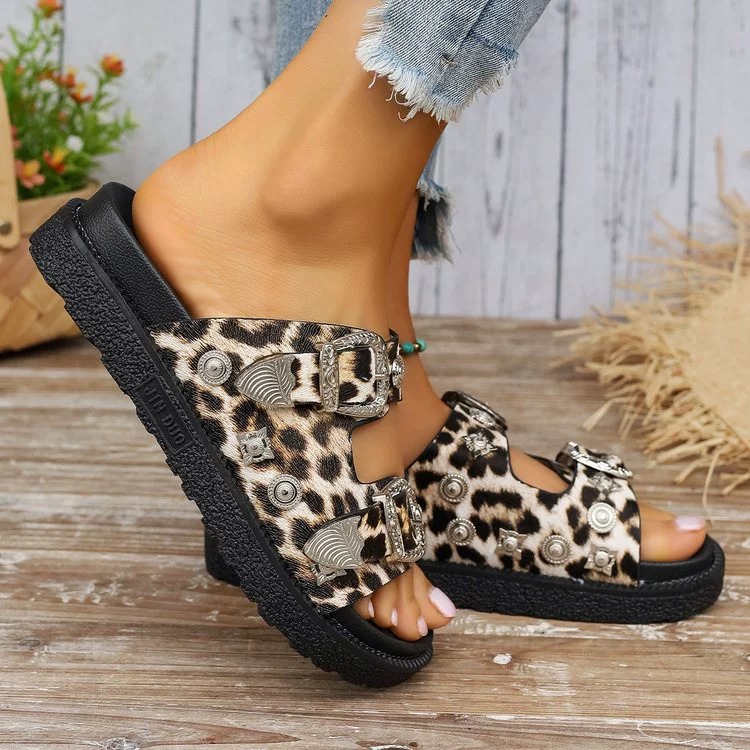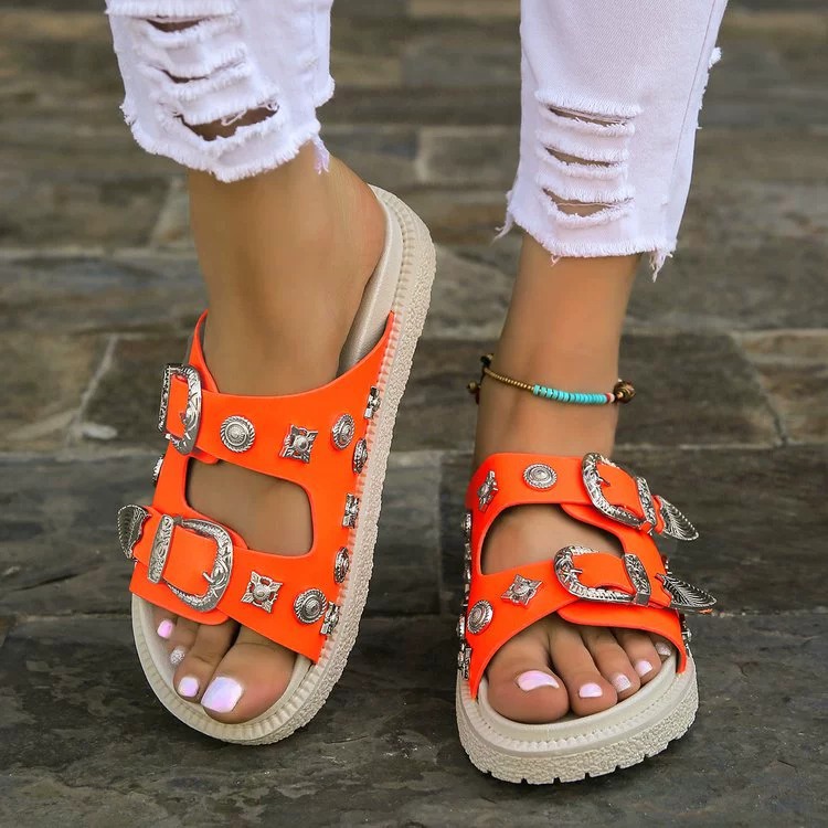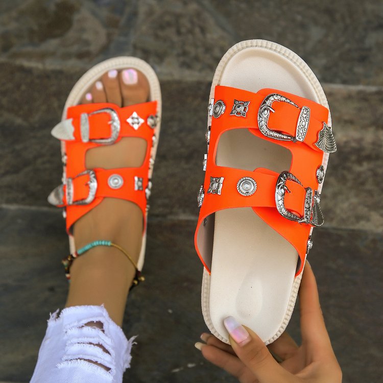 대외 무역 플러스 사이즈 2024 여름 폭발 패션 리벳 두꺼운 바닥 벨트 버클 캐주얼 외부 착용 한 단어 비치 샌들