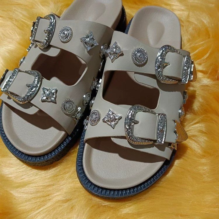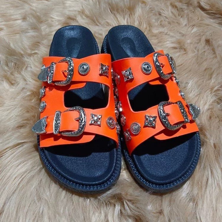 대외 무역 플러스 사이즈 2024 여름 폭발 패션 리벳 두꺼운 바닥 벨트 버클 캐주얼 외부 착용 한 단어 비치 샌들스토어 가기