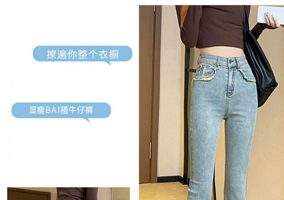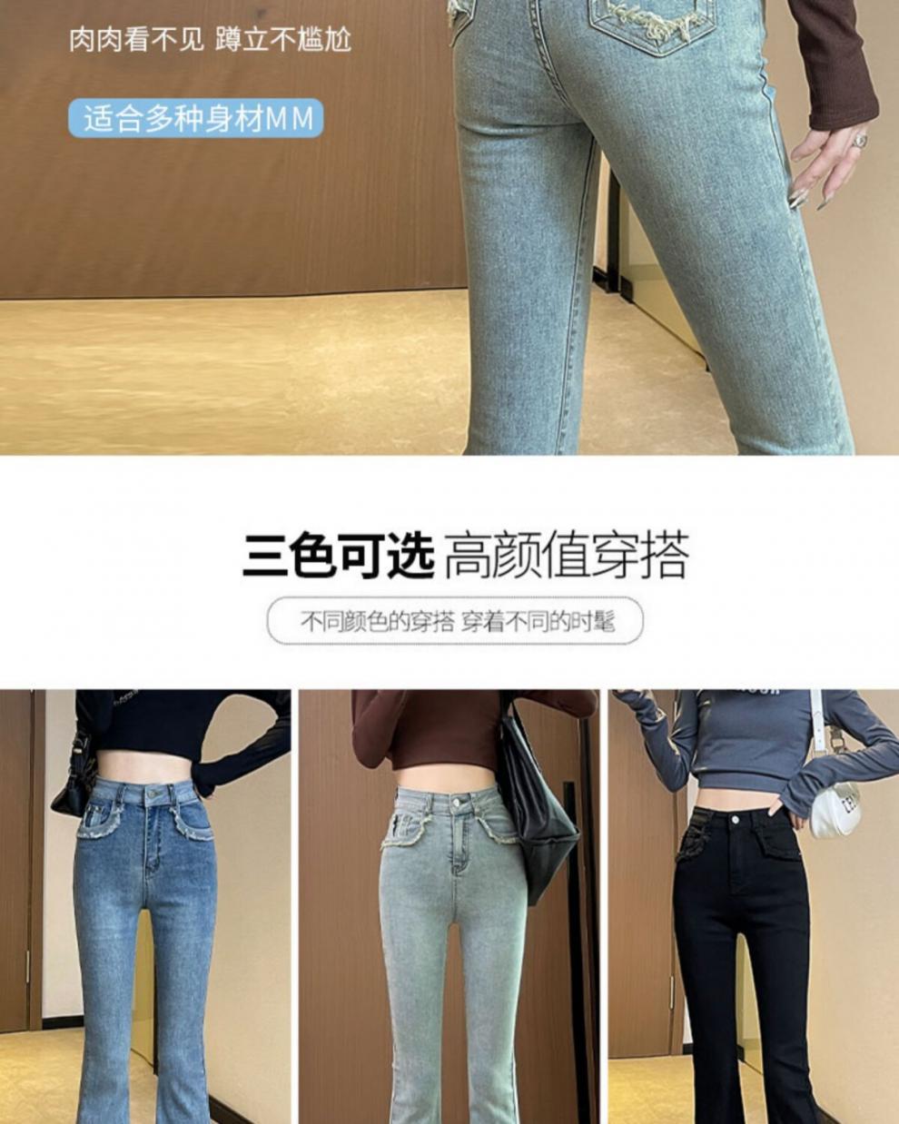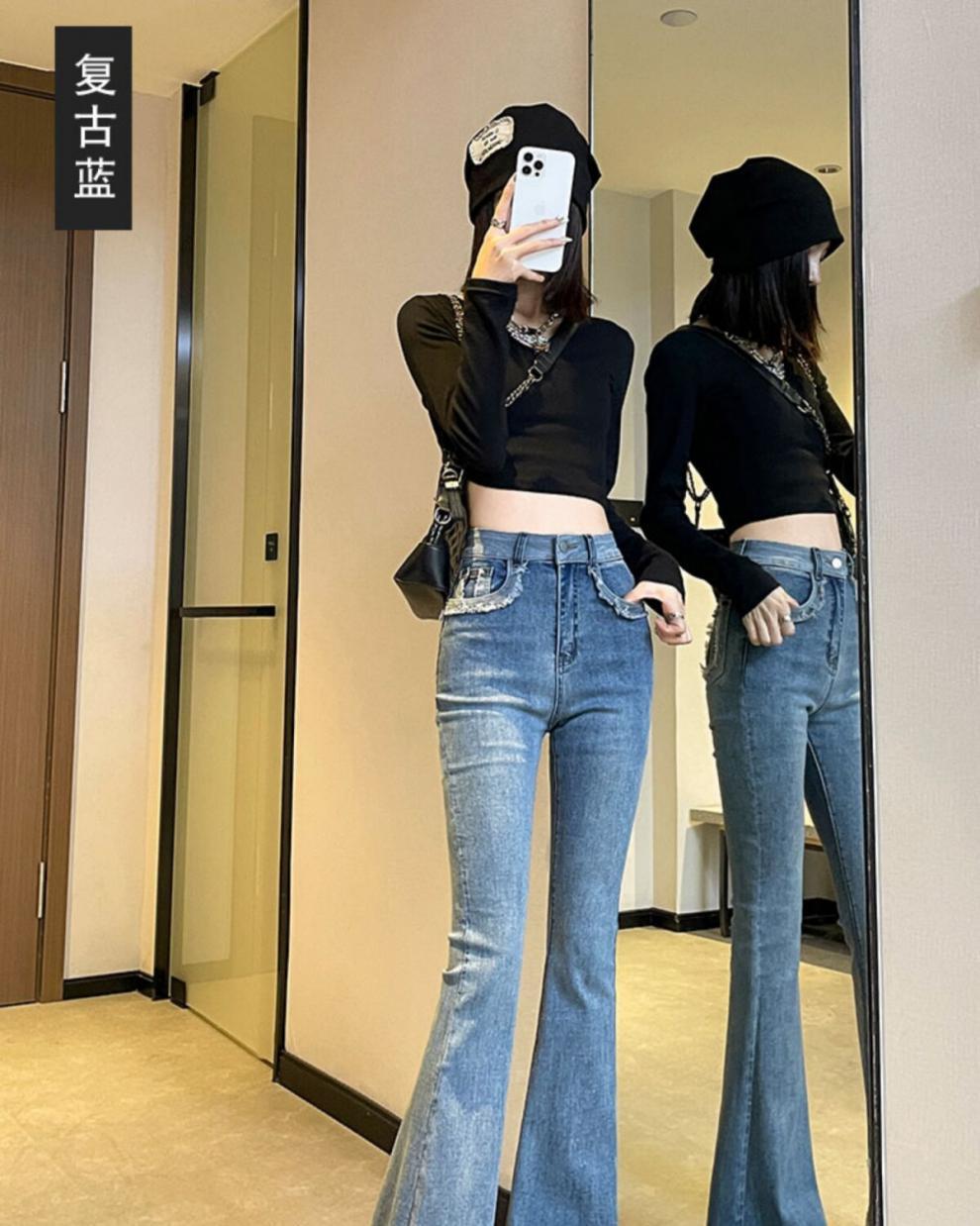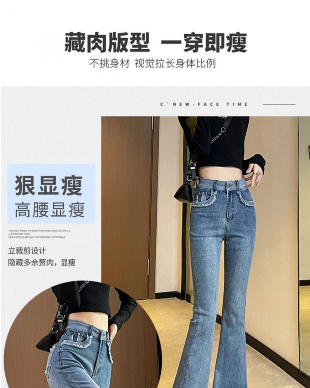 블랙 모피 엣지 마이크로 플레어 청바지 여성 패션 올매치 얇은 새로운 하이 웨이스트 슬림 핏 슬리밍 호스 슈 롱 바지스토어 가기