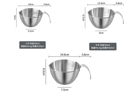 304 스테인레스 스틸 핸들 측정 컵 저울 ml 주방 가정용 측정 실린더 두유 컵 우유 차 가게 스페셜