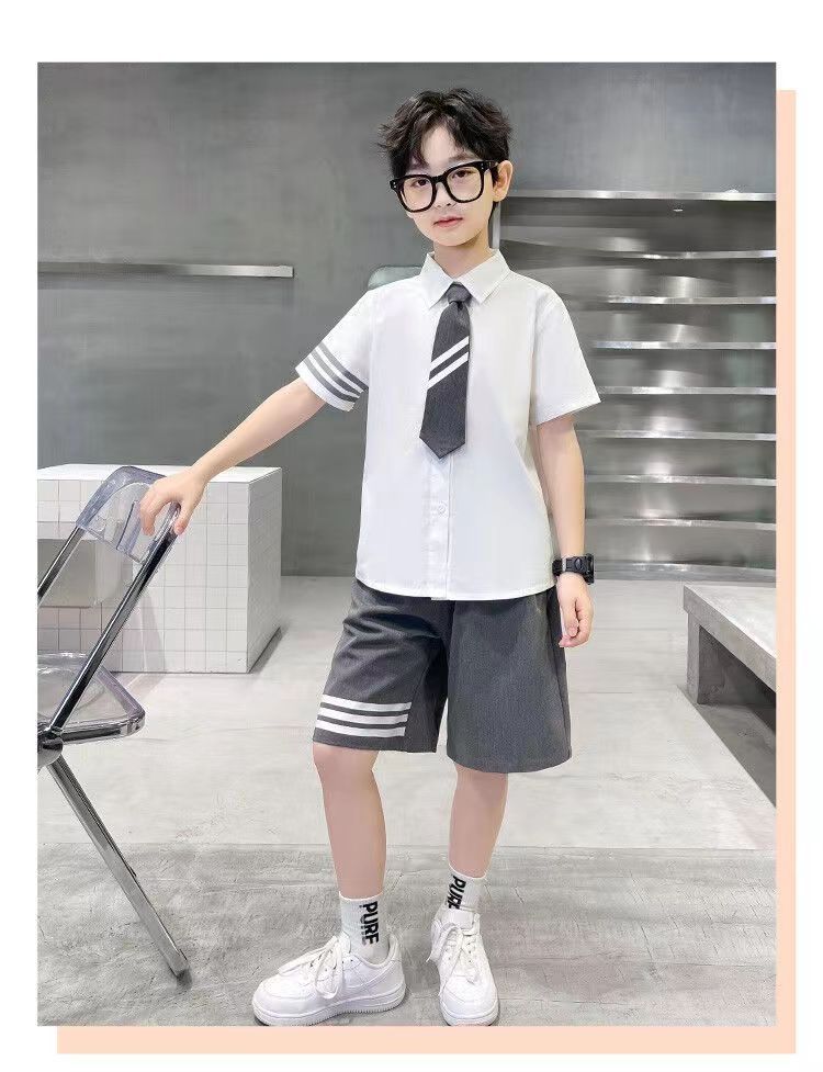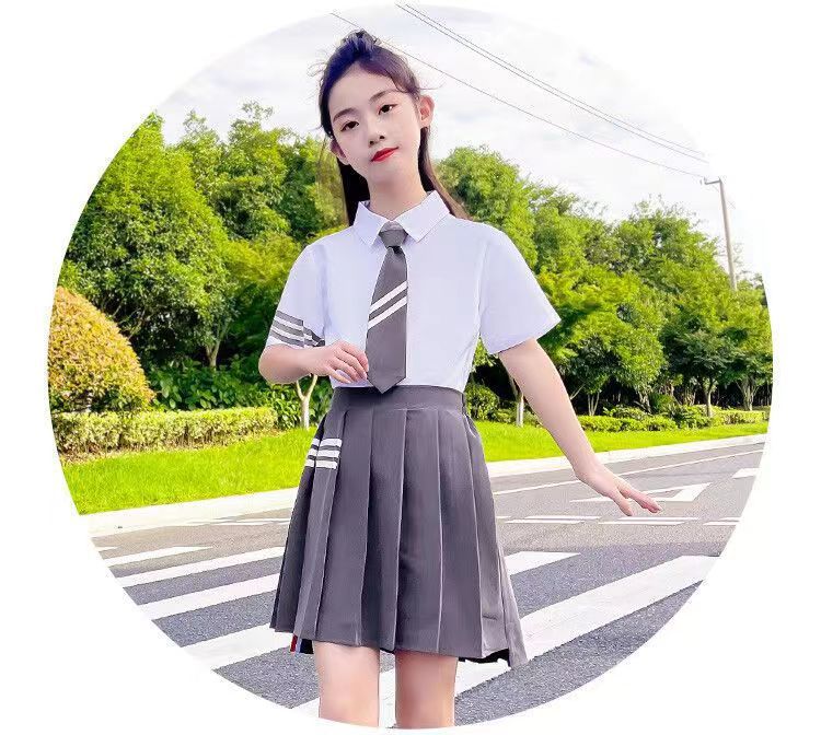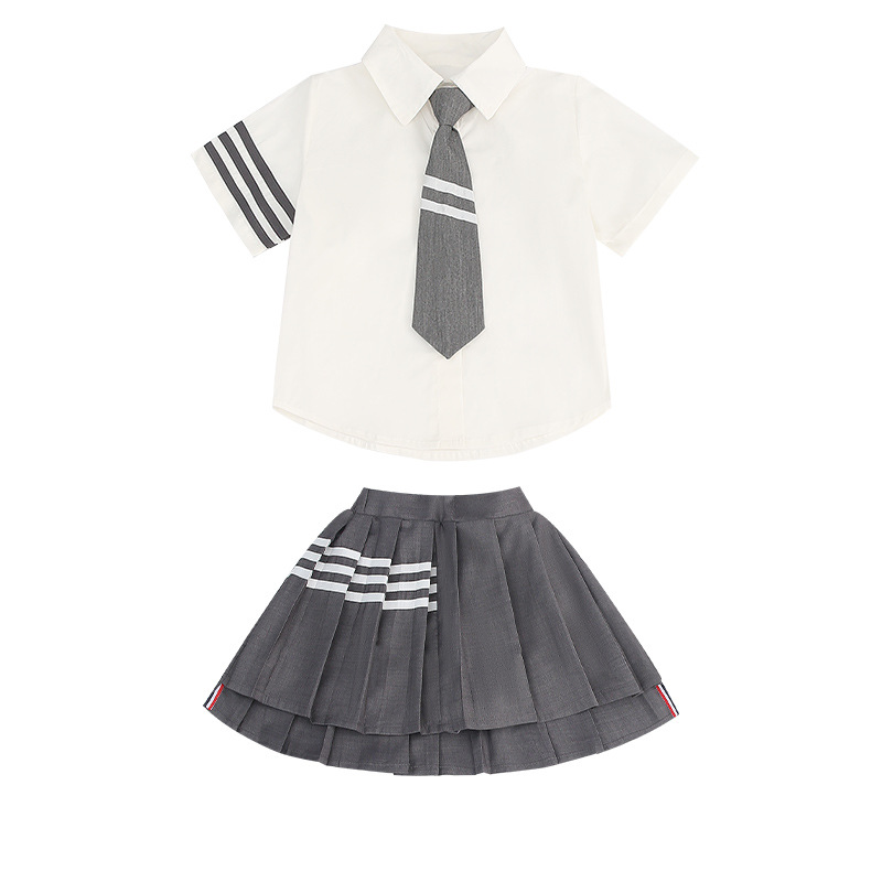 여아용 컬리지 스타일 왕신링 JK 세트 교복 유치원복 2025 여름복 중대형 어린이 반팔 셔츠 플리츠 스커트