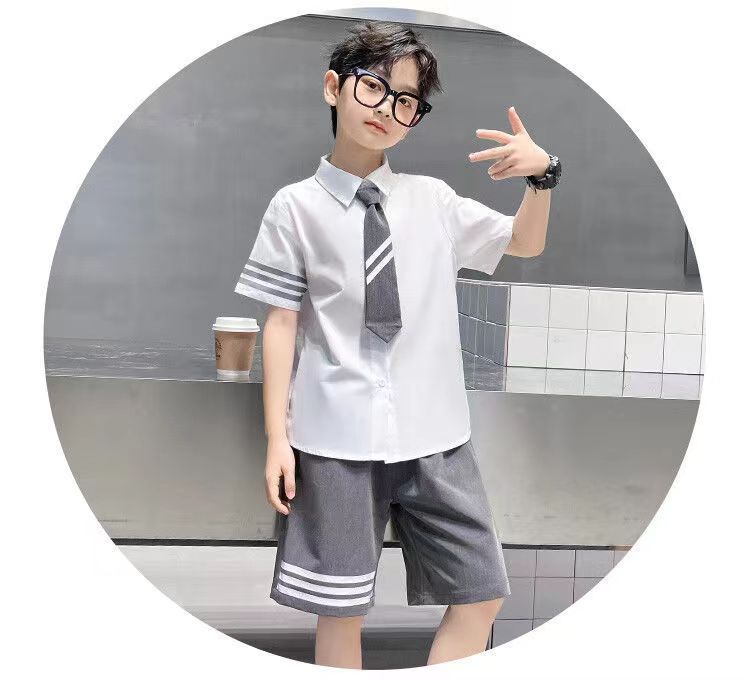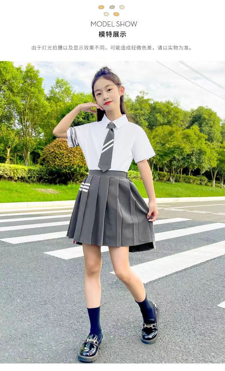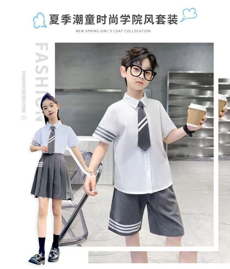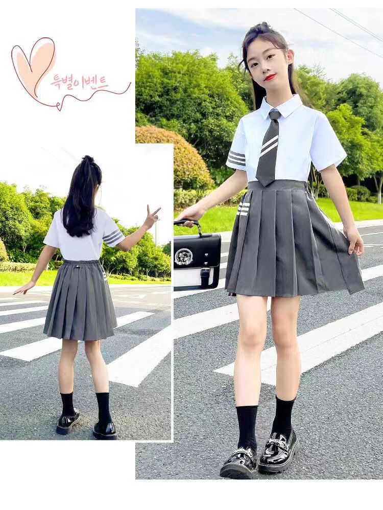 여아용 컬리지 스타일 왕신링 JK 세트 교복 유치원복 2025 여름복 중대형 어린이 반팔 셔츠 플리츠 스커트스토어 가기