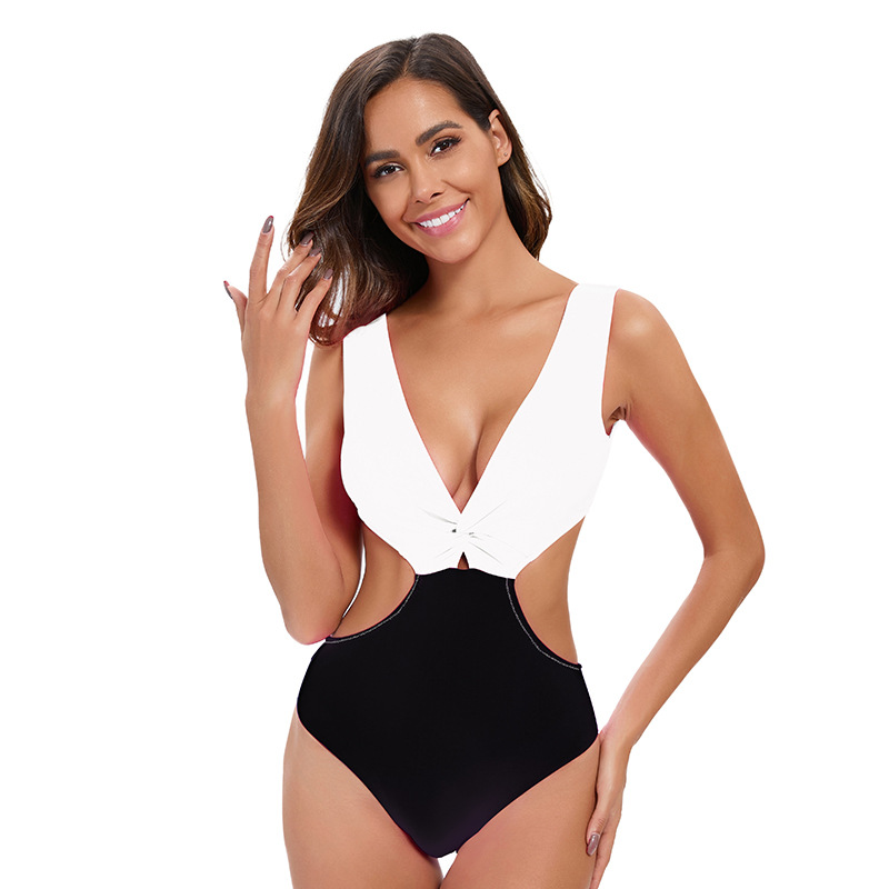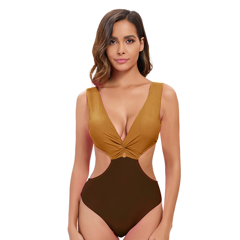 대외 무역 유럽과 미국의 새로운 컬러 매칭 트라이앵글 할로우 아웃 수영복 여성 아마존 섹시 백리스 V 넥 비치 수영복스토어 가기