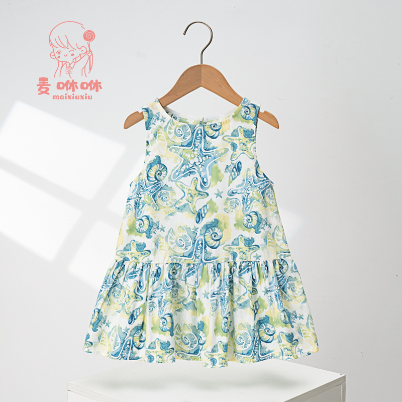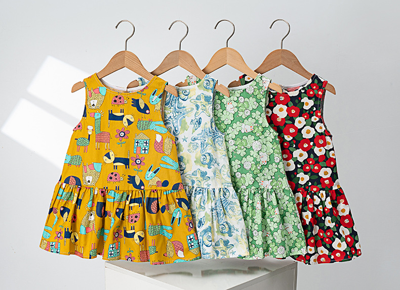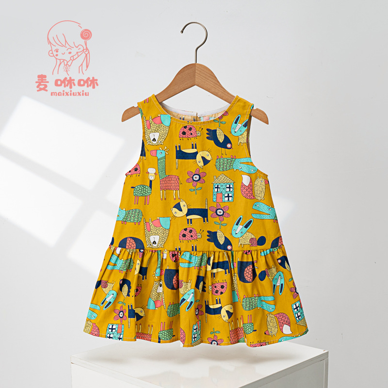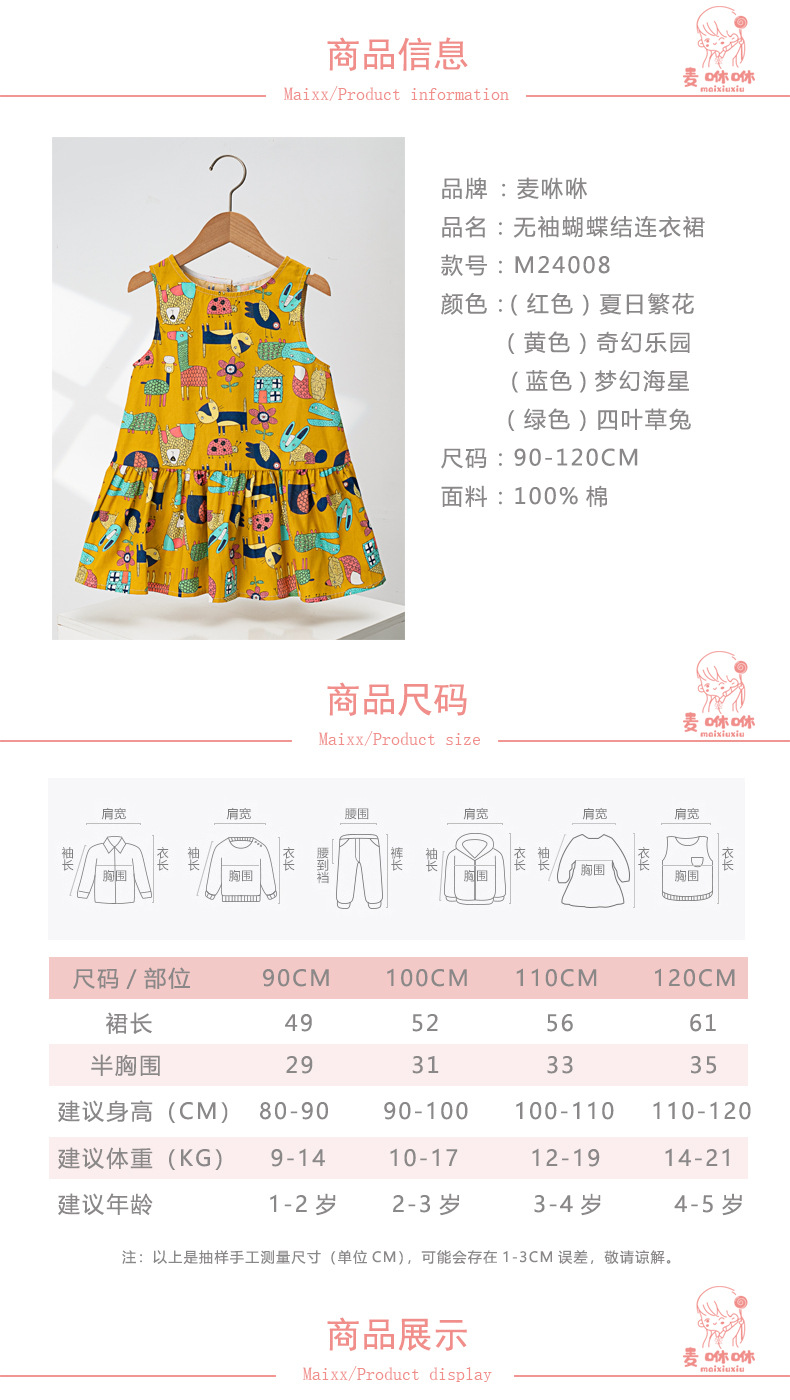 마이슈슈 수출용 여아 원피스 귀여운 민소매 원피스 패셔너블한 공주 원피스 캐주얼 만화 리본스토어 가기