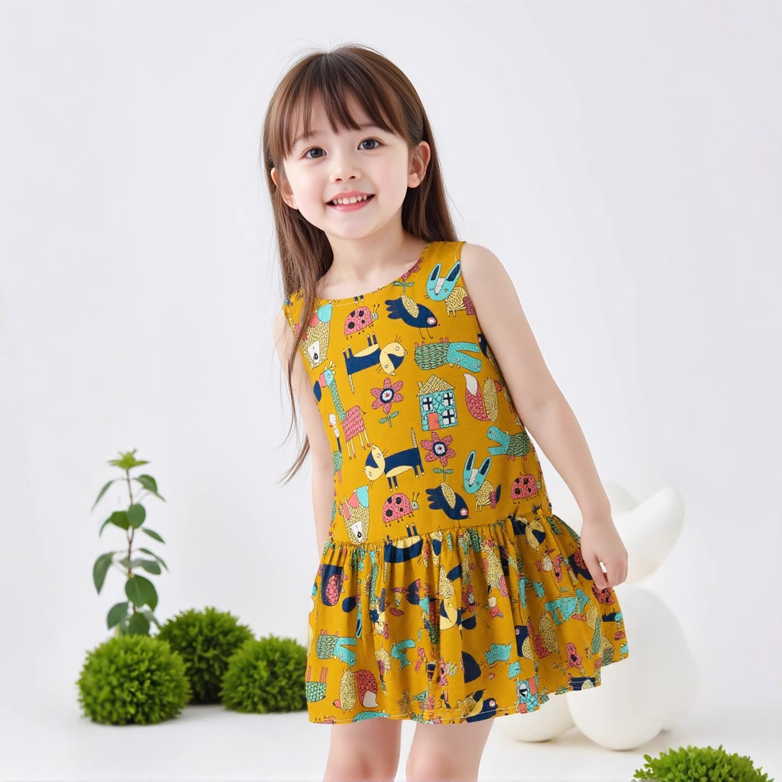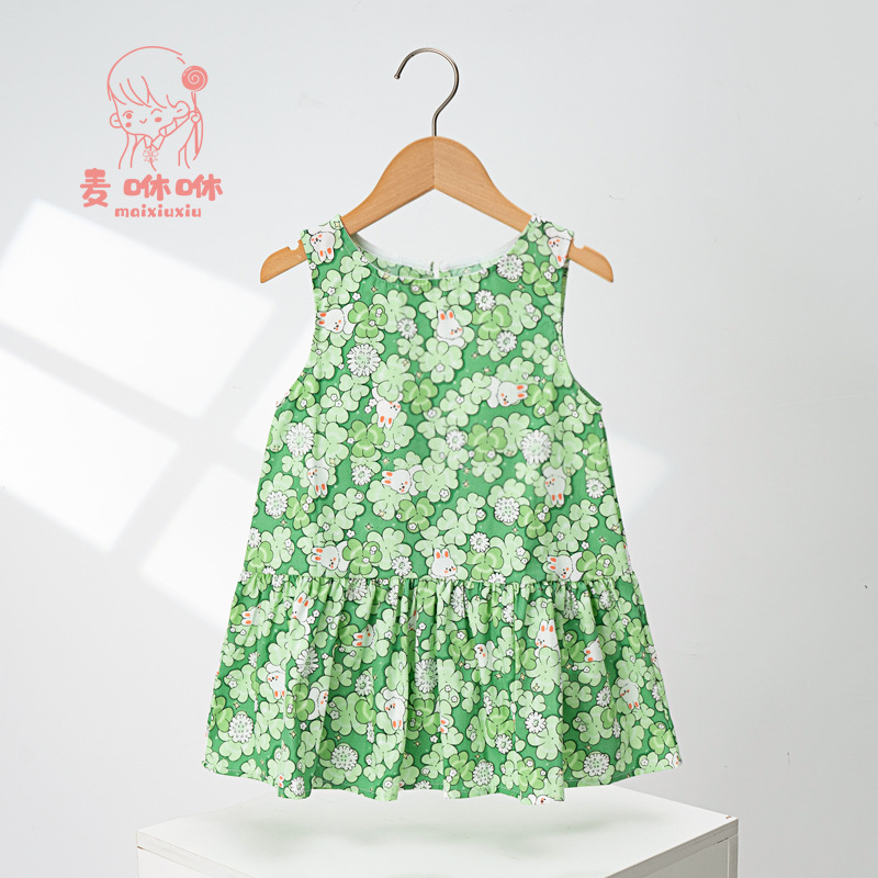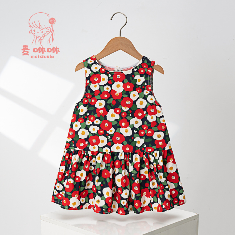 마이슈슈 수출용 여아 원피스 귀여운 민소매 원피스 패셔너블한 공주 원피스 캐주얼 만화 리본