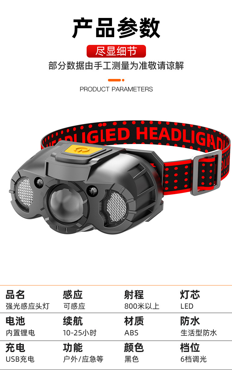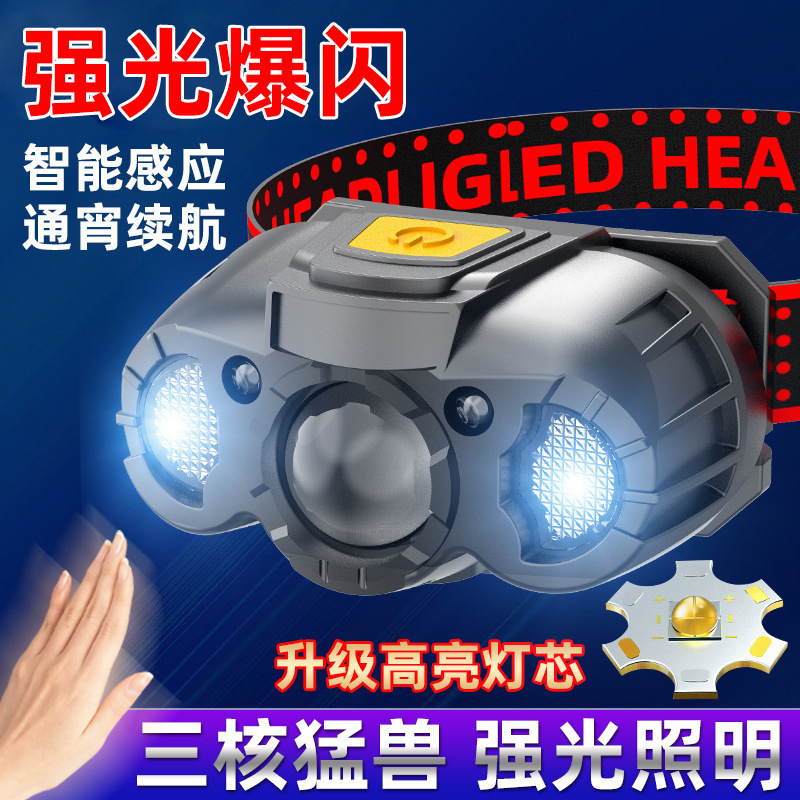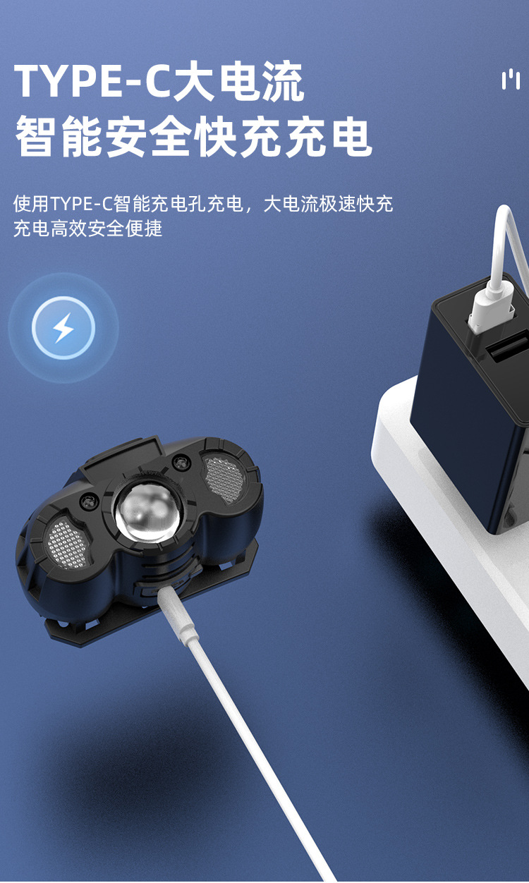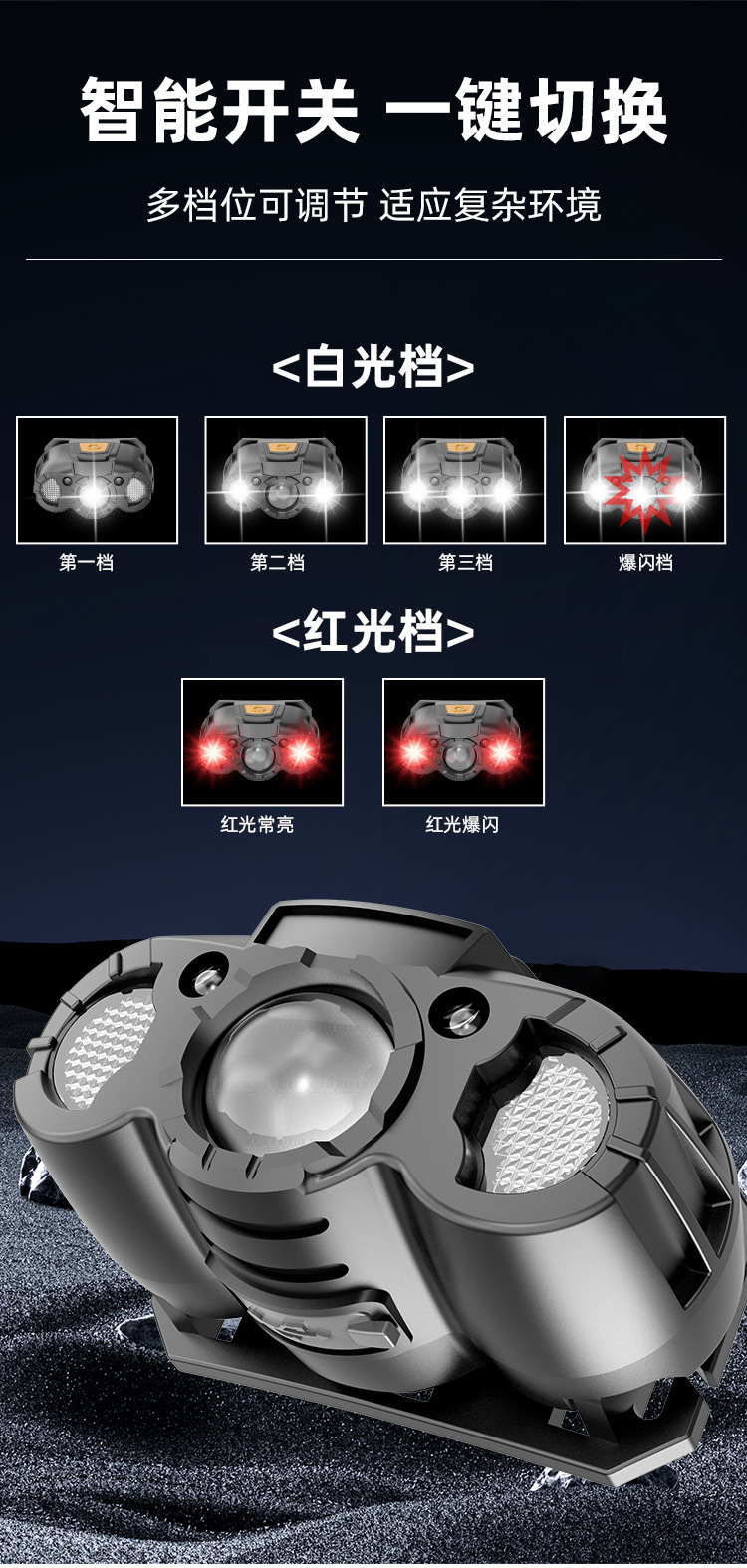 국경 간 다기능 충전식 손전등, 야외용 LED 강광 러닝 라이트, 캠핑 순찰 경고등