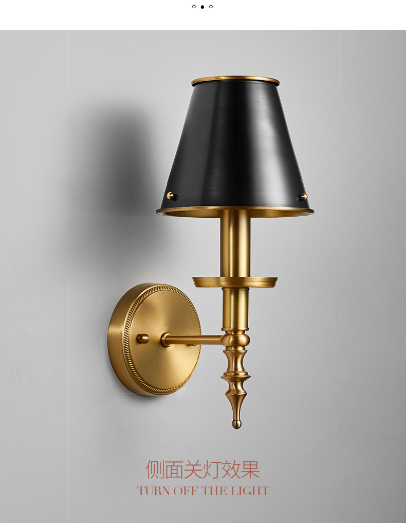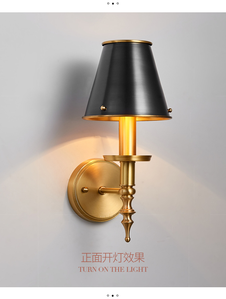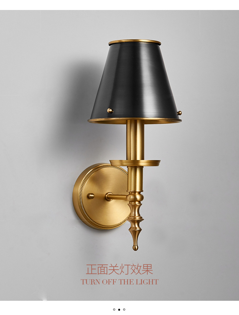 미국식 모든 구리 벽 램프 유럽 스타일의 간단한 거실 침실 침대 옆 램프 복고풍 고급 황동 검은 전등 벽 램프스토어 가기